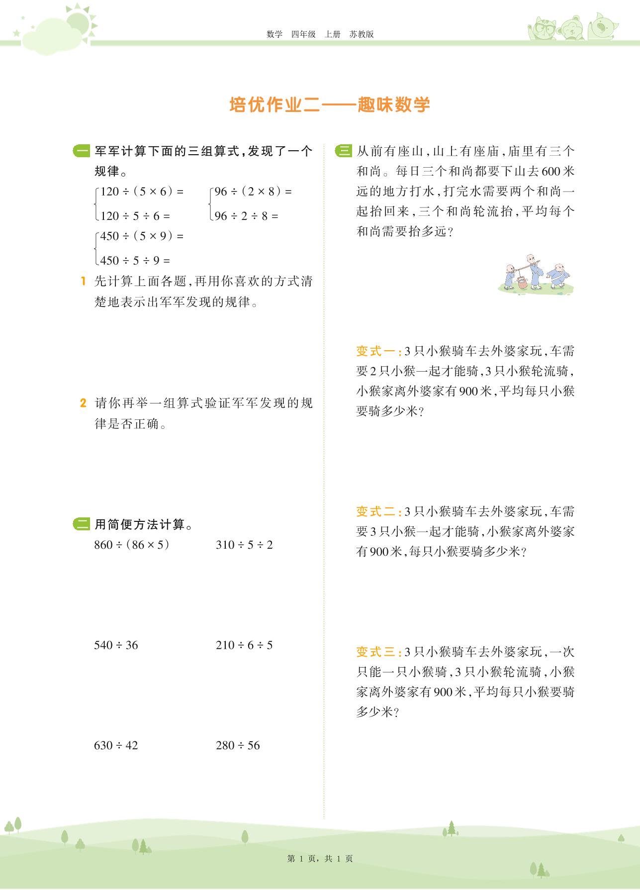 2020上册四年级数学苏教版 第二单元 两、三位数除以两位数——培优作业二——趣味数学