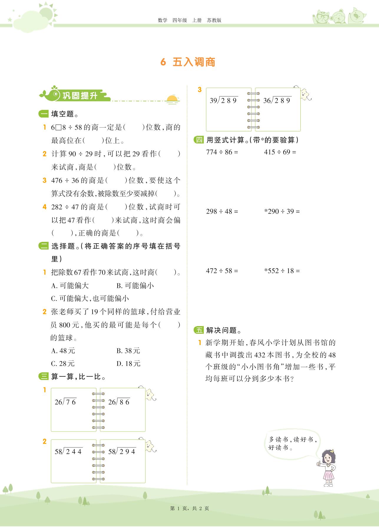 2020上册四年级数学苏教版 第二单元 两、三位数除以两位数——6 五入调商