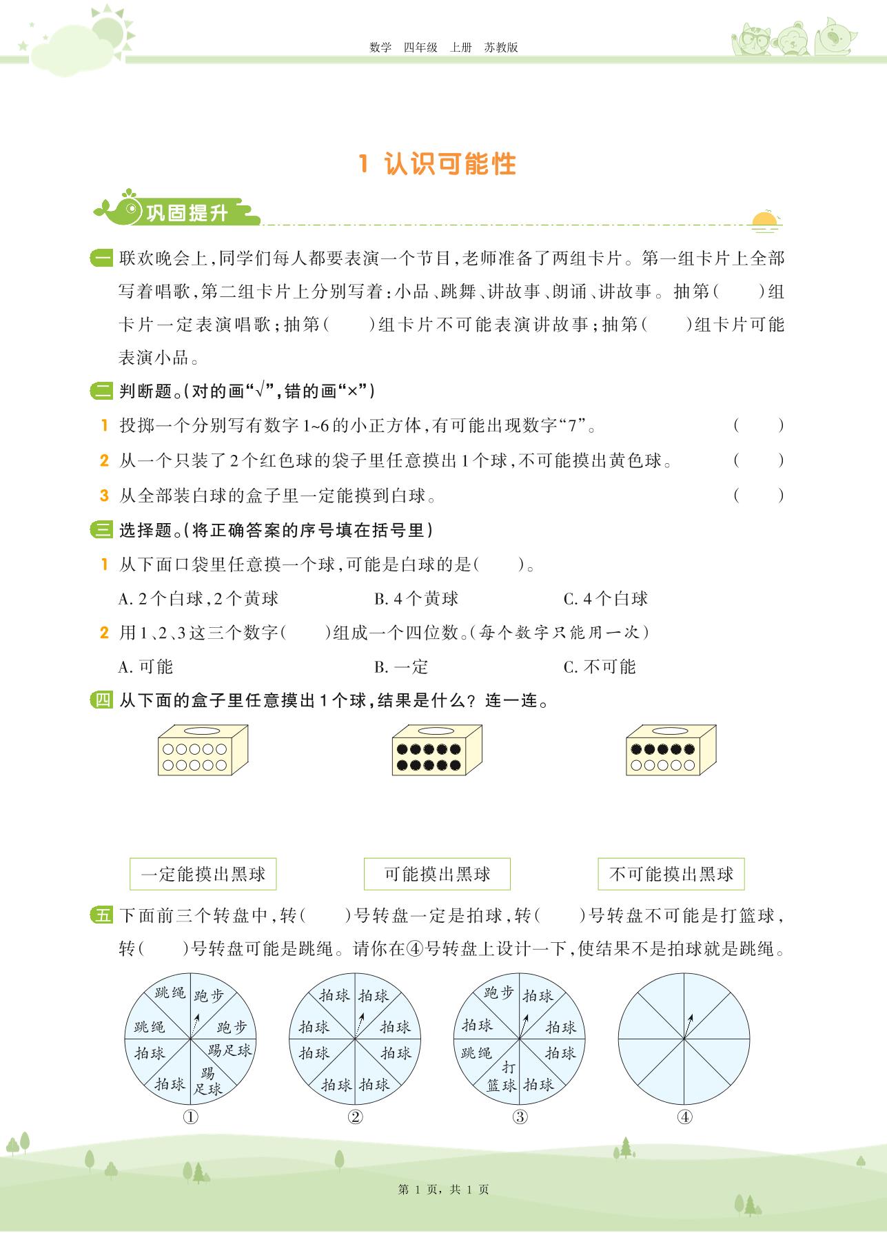 2020上册四年级数学苏教版 第六单元 可能性——1 认识可能性