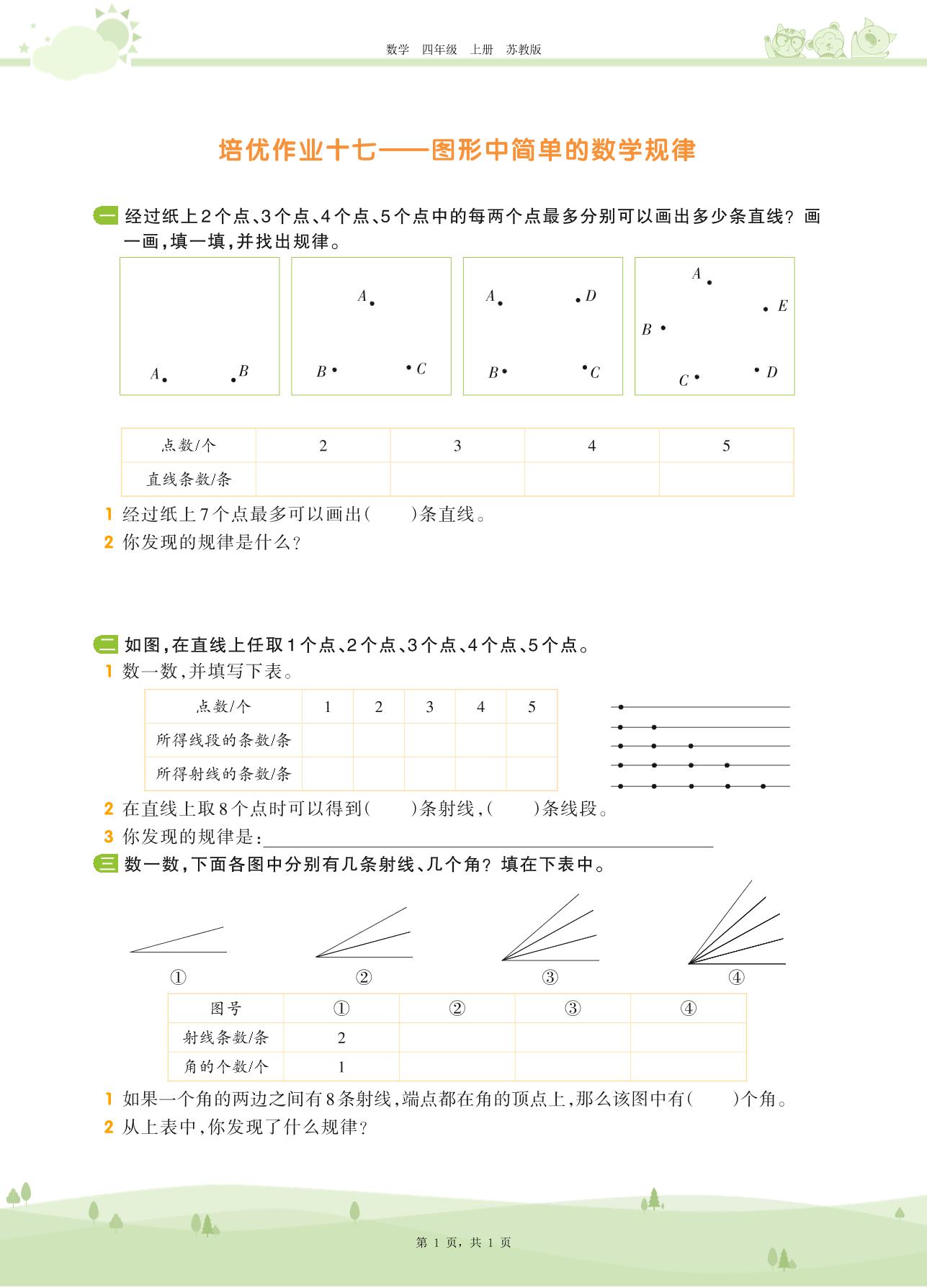 2020上册四年级数学苏教版 第八单元 垂线与平行线——培优作业十七——图形中简单的数学规律