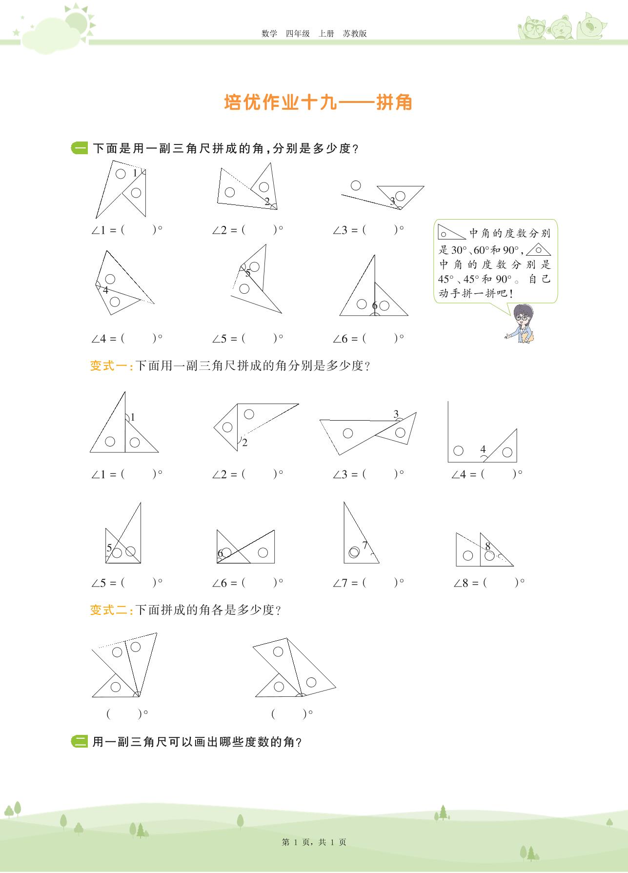2020上册四年级数学苏教版 第八单元 垂线与平行线——培优作业十九——拼角