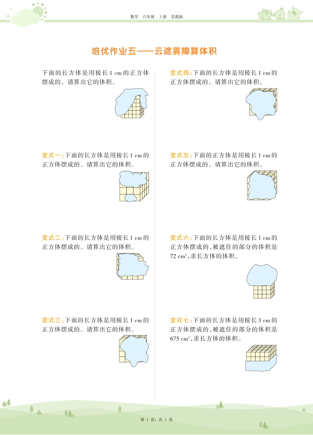 2020上册六年级数学苏教版 第一单元——培优作业五——云遮雾障算体积