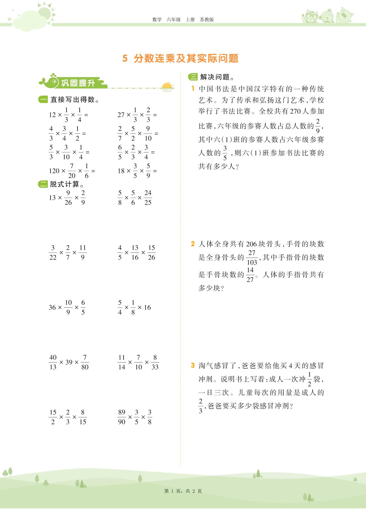2020上册六年级数学苏教版 第二单元——5 分数连乘及其实际问题