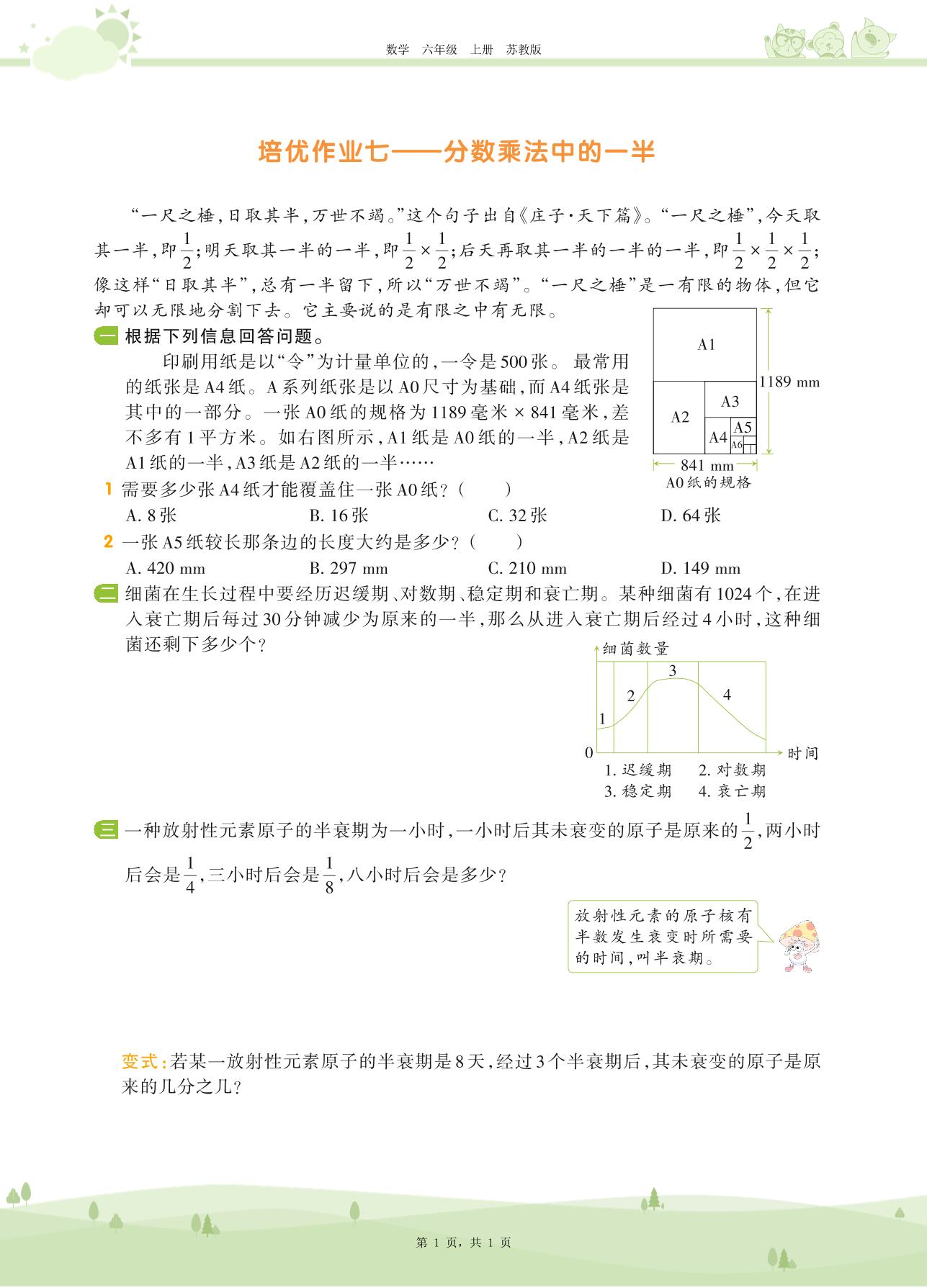 2020上册六年级数学苏教版 第二单元——培优作业七——分数乘法中的一半
