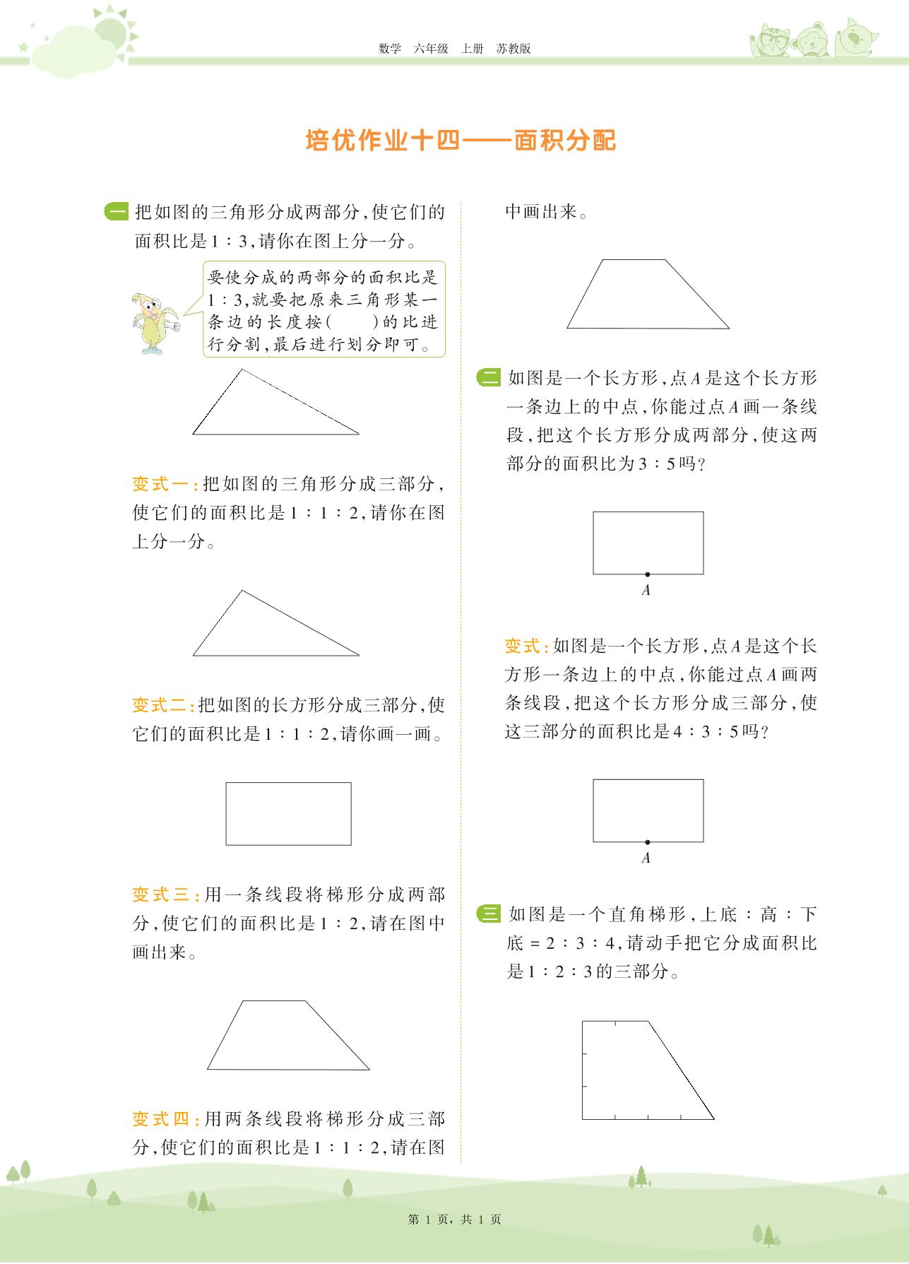 2020上册六年级数学苏教版 第三单元——培优作业十四——面积分配