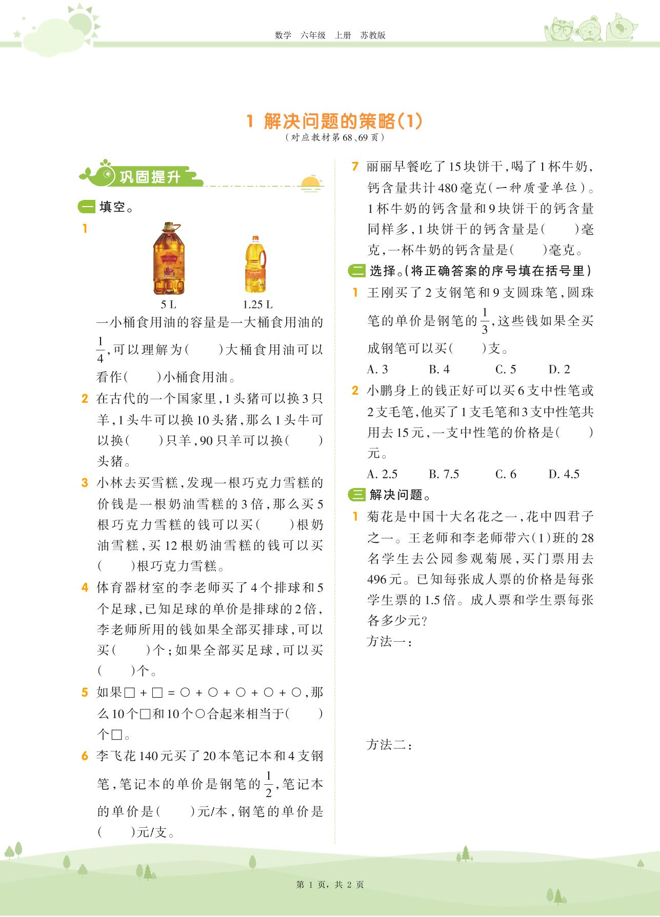 2020上册六年级数学苏教版 第四单元——1 解决问题的策略(1)