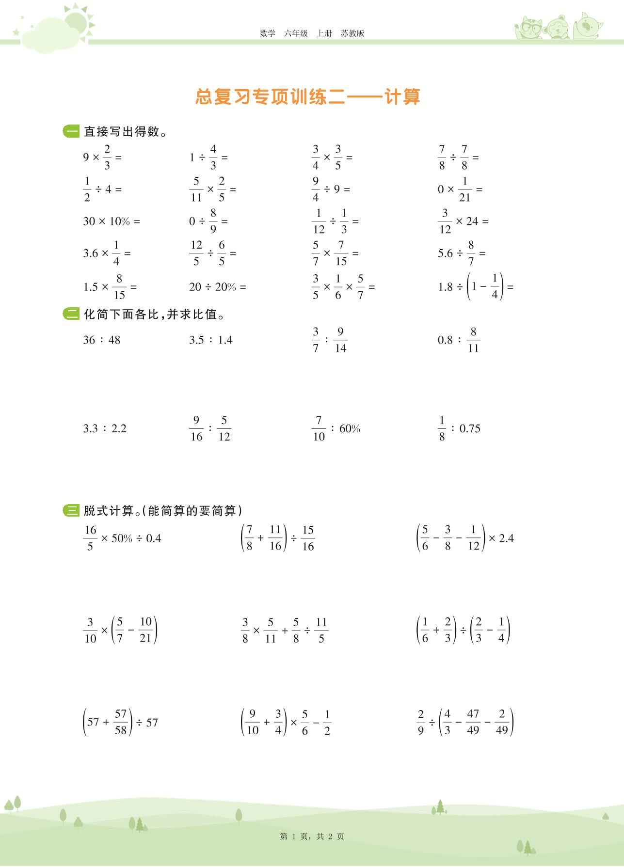 2020上册六年级数学苏教版 第七单元——计算