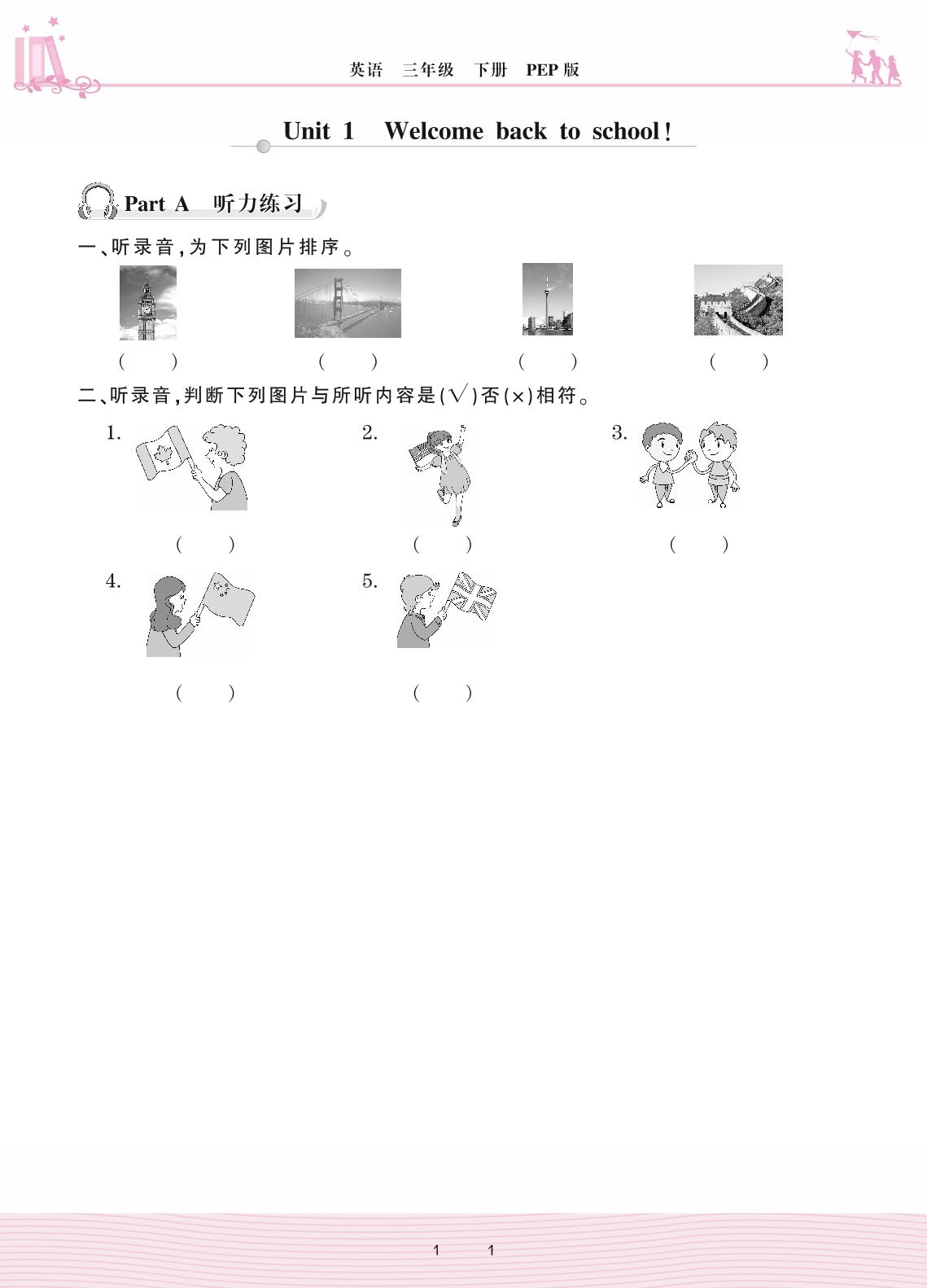 2021下册三年级英语PEP版 Unit 1 Welcome back to school! —Part A 听力练习