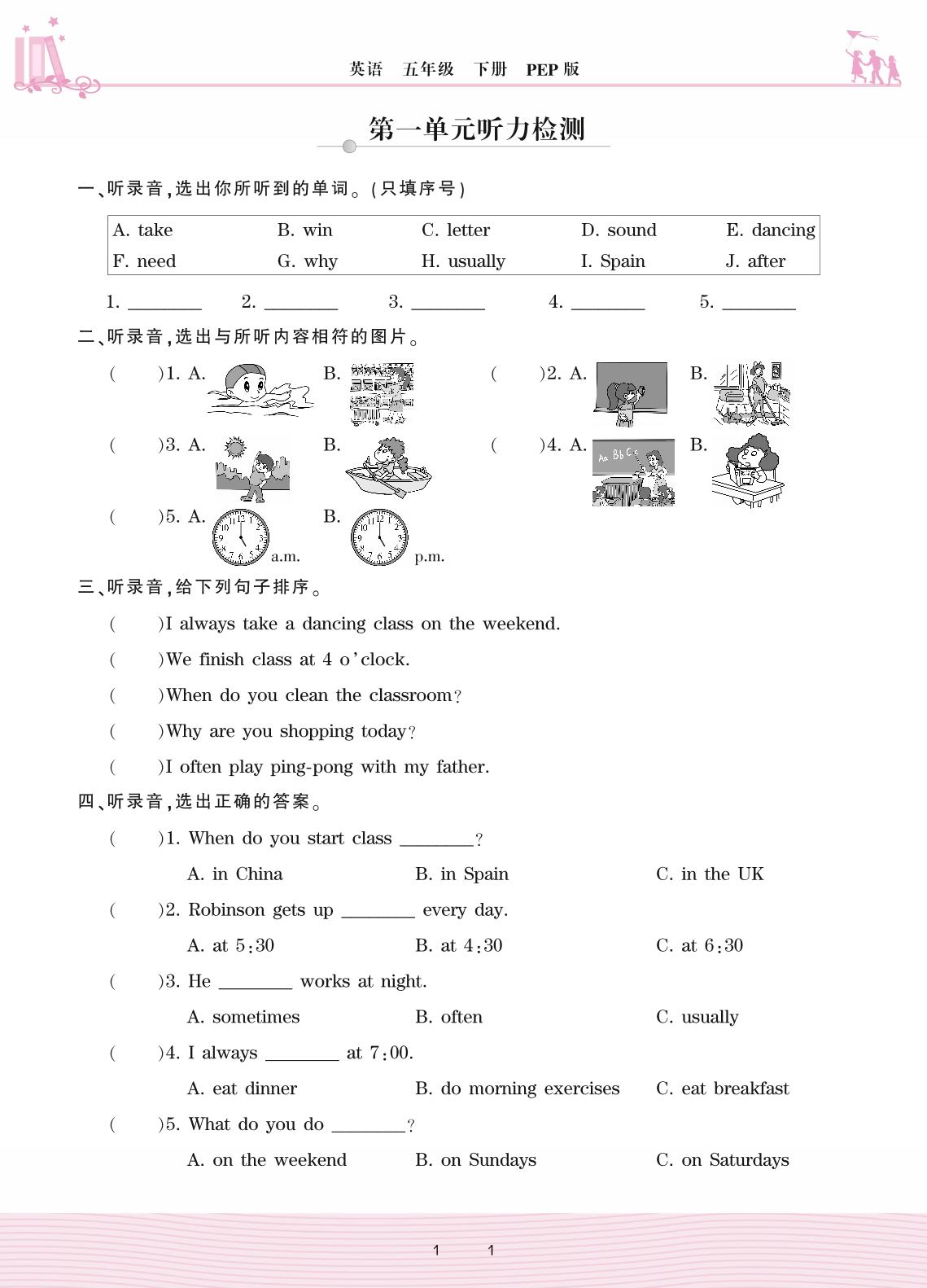 2021下册五年级英语PEP版 第一单元听力检测_R210928172137165