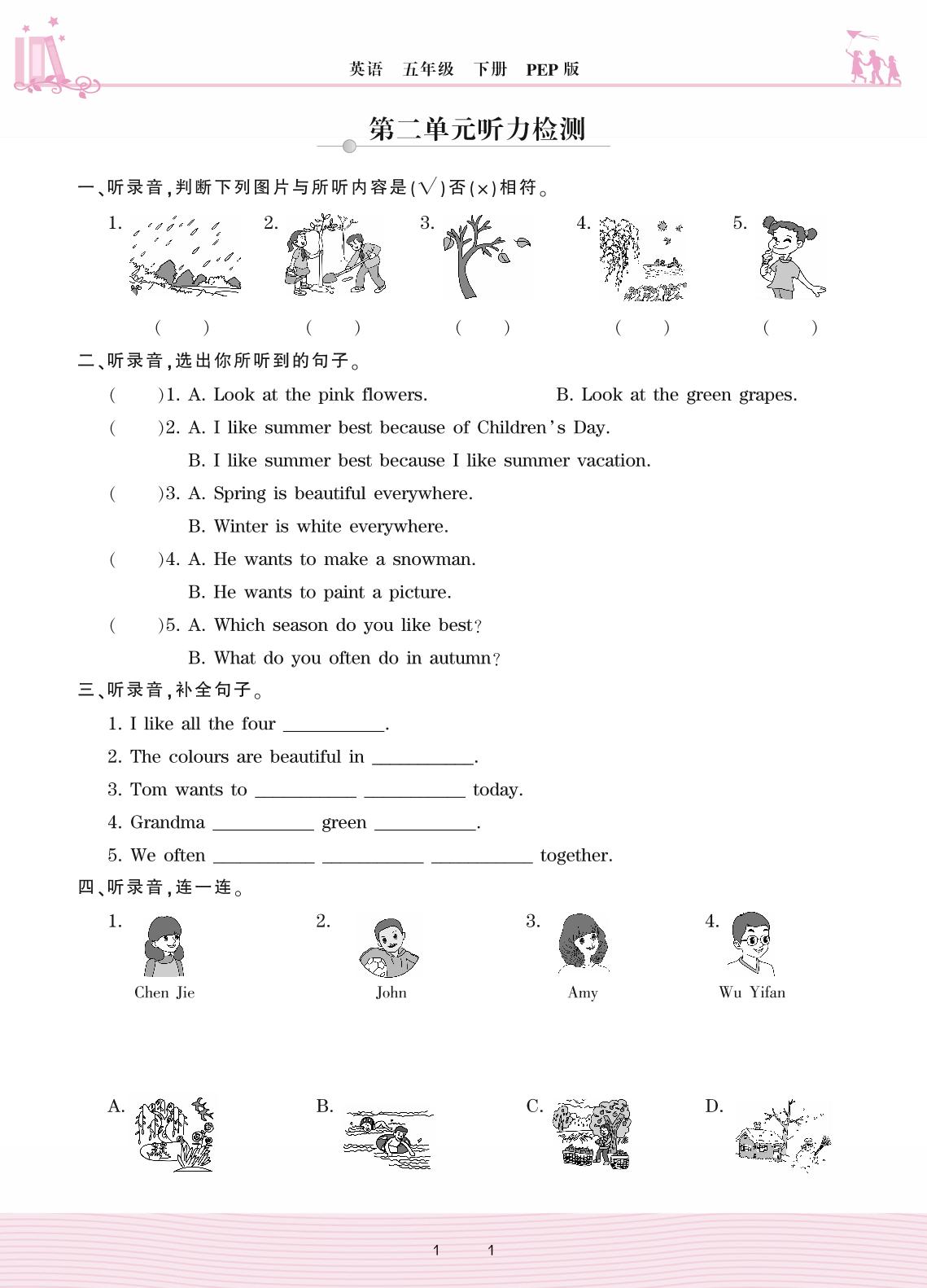 2021下册五年级英语PEP版 第二单元听力检测_R210928172138408