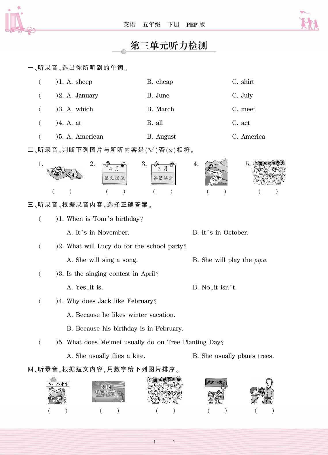 2021下册五年级英语PEP版 第三单元听力检测_R210928172138786