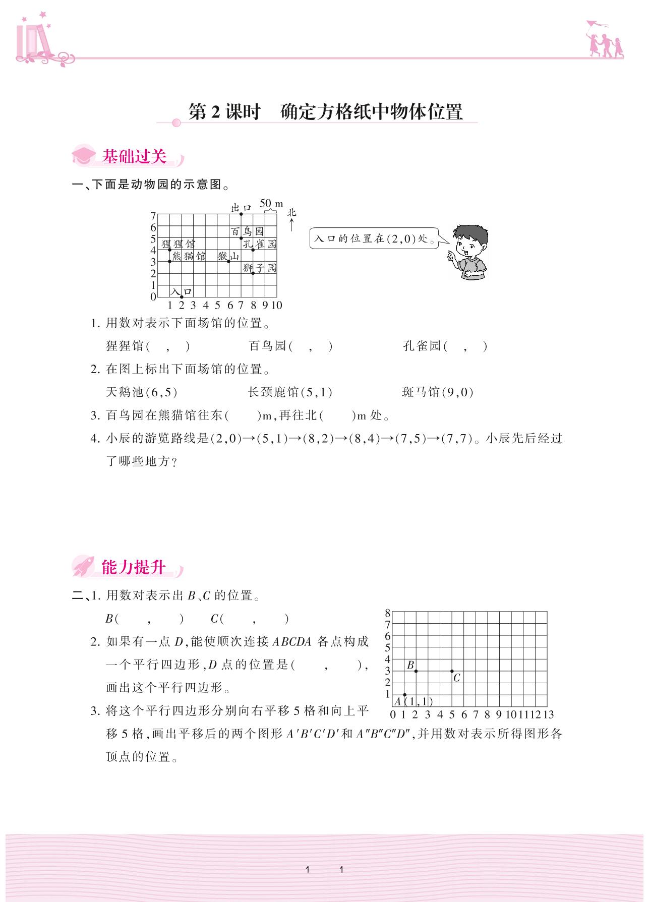 2020上册五年级数学人教版 2 位置——第2课时 确定方格纸中物体位置