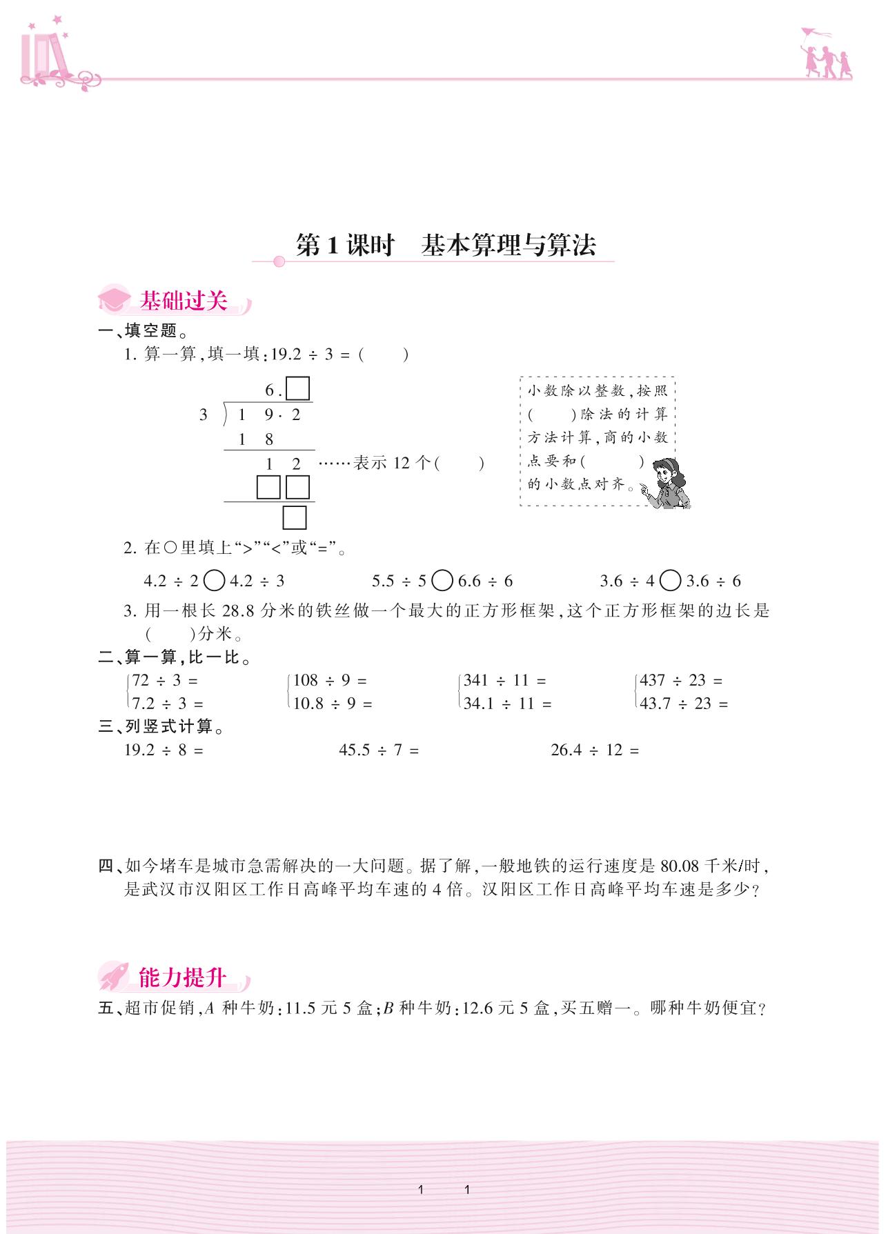 2020上册五年级数学人教版 3 小数除法 1. 除数是整数的小数除法——第1课时 基本算理与算法