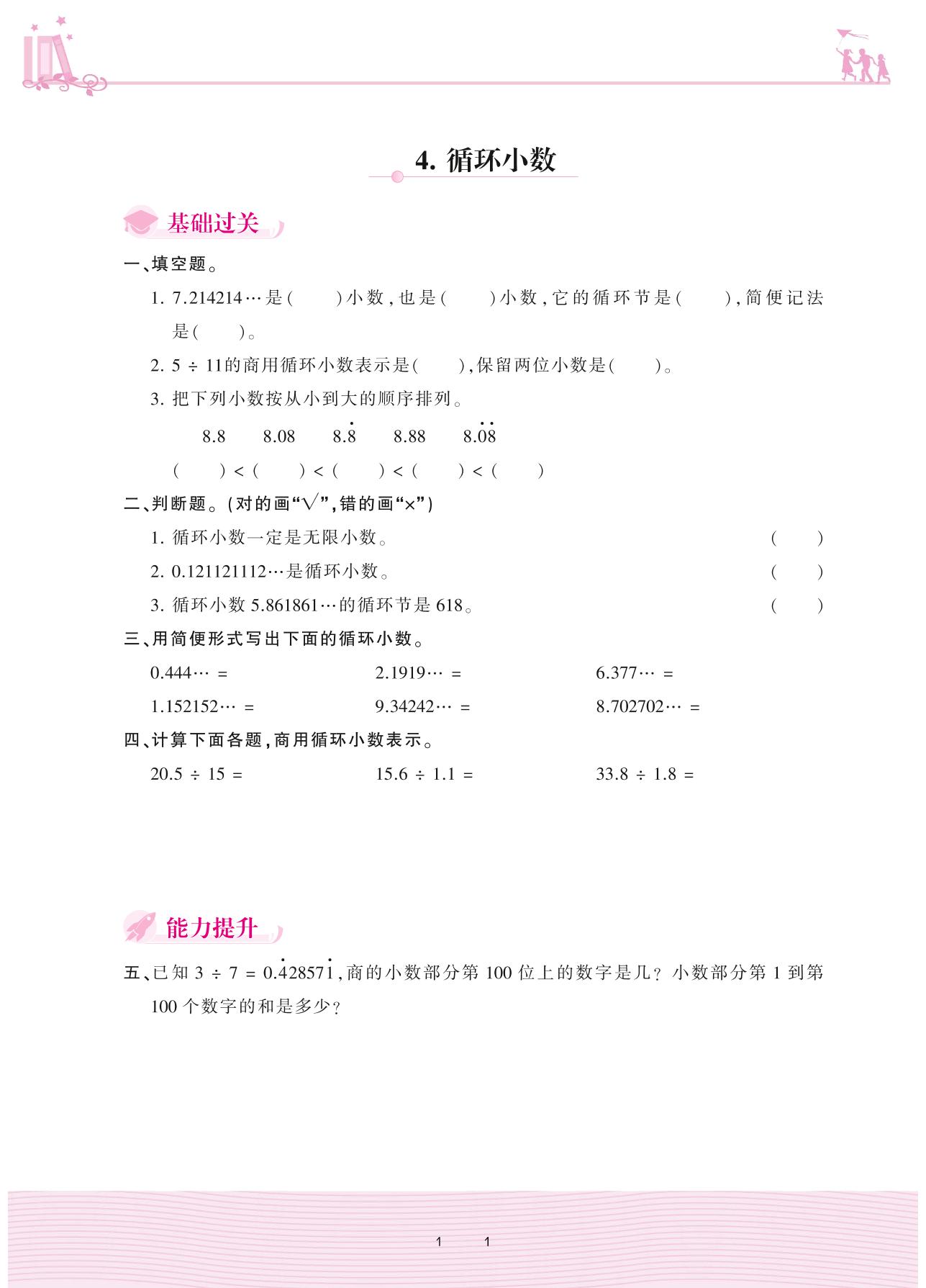 2020上册五年级数学人教版 3 小数除法 4. 循环小数