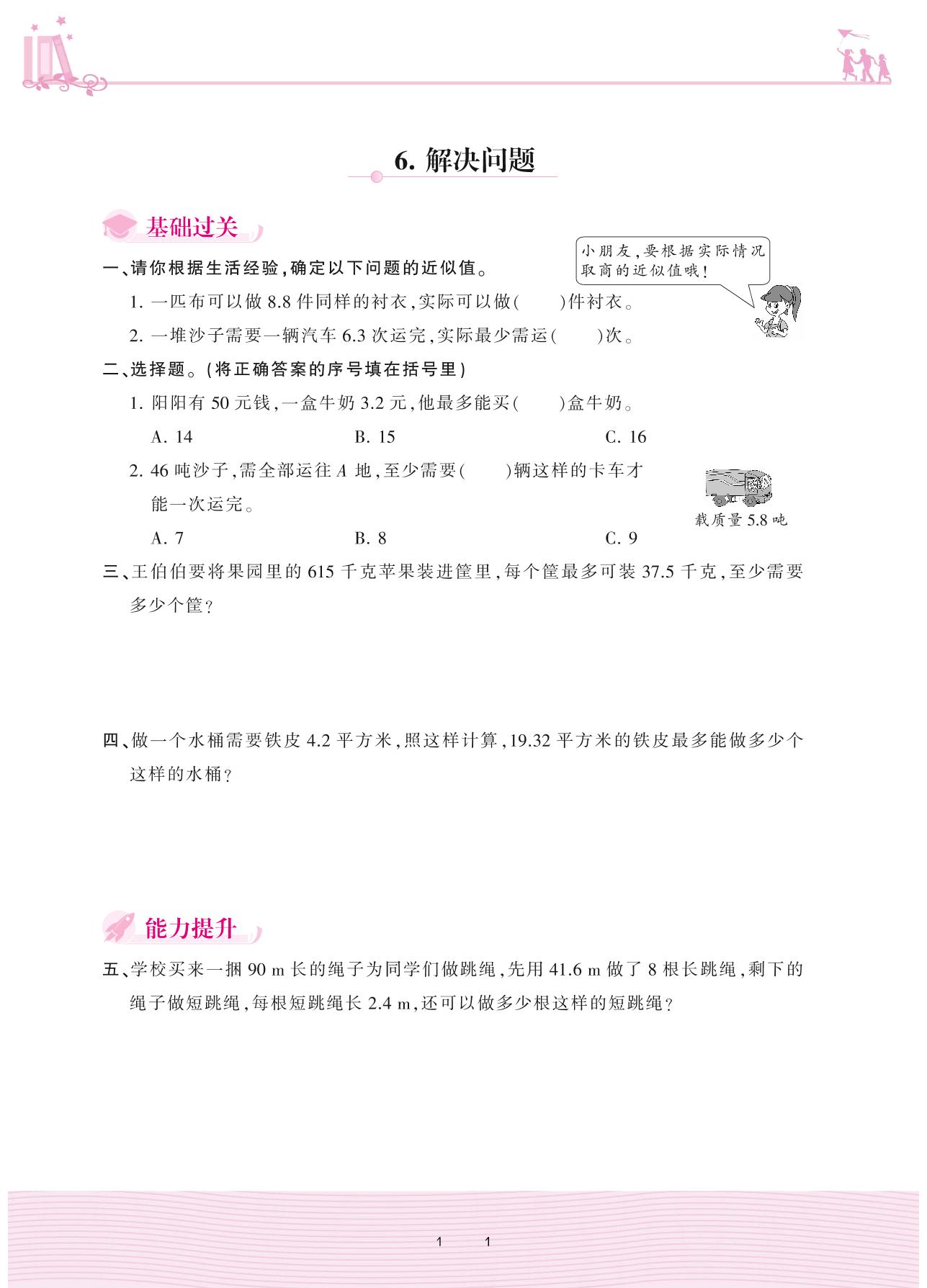 2020上册五年级数学人教版 3 小数除法 6. 解决问题