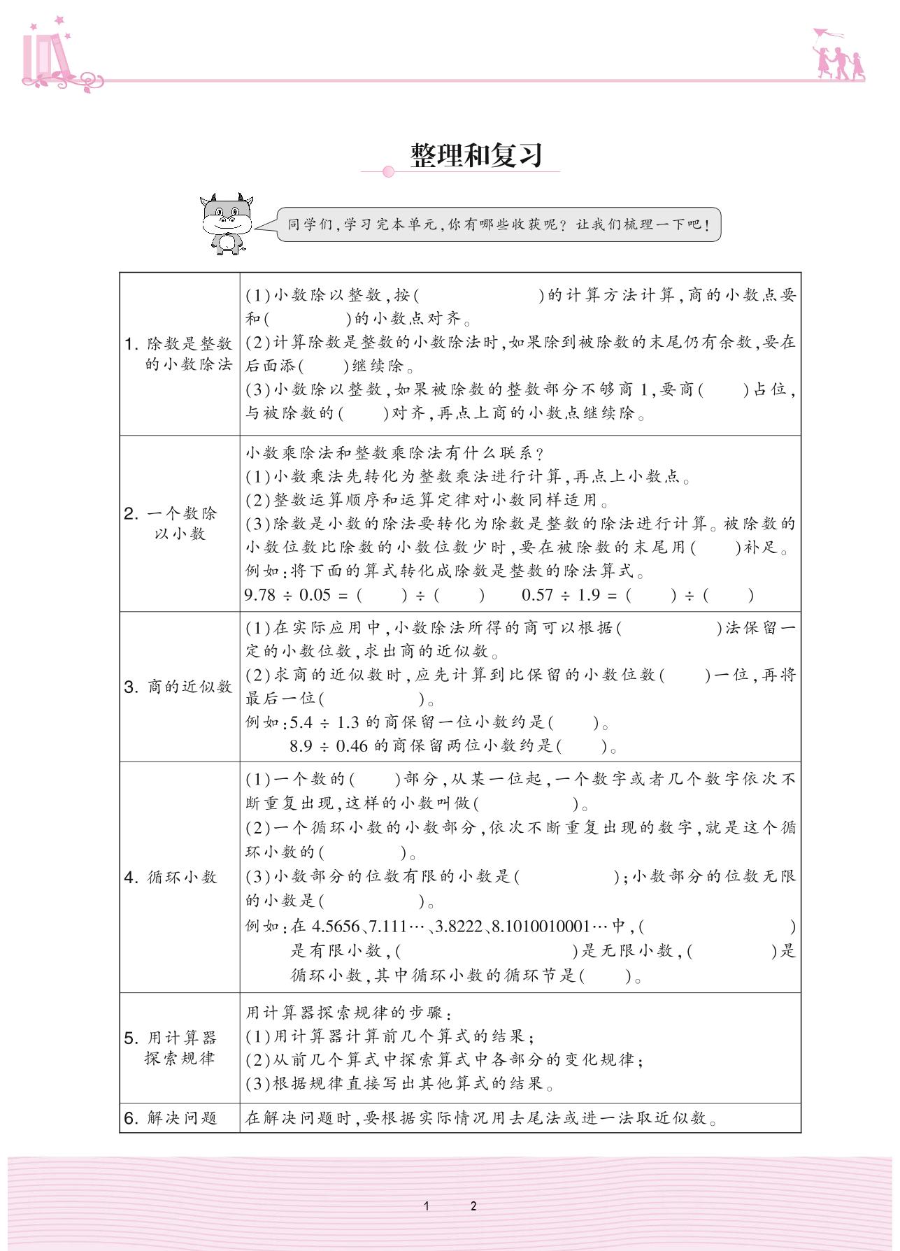 2020上册五年级数学人教版 3 小数除法——整理和复习