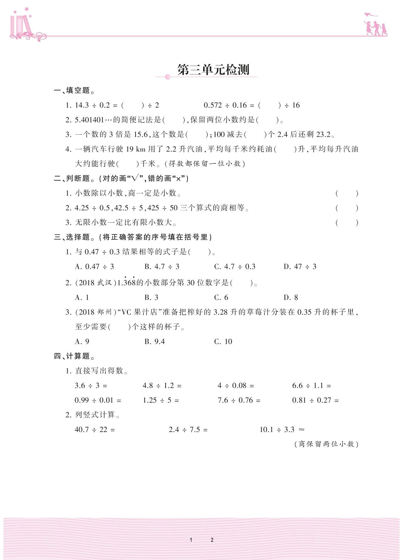 五年级数学人教版上册单元卷