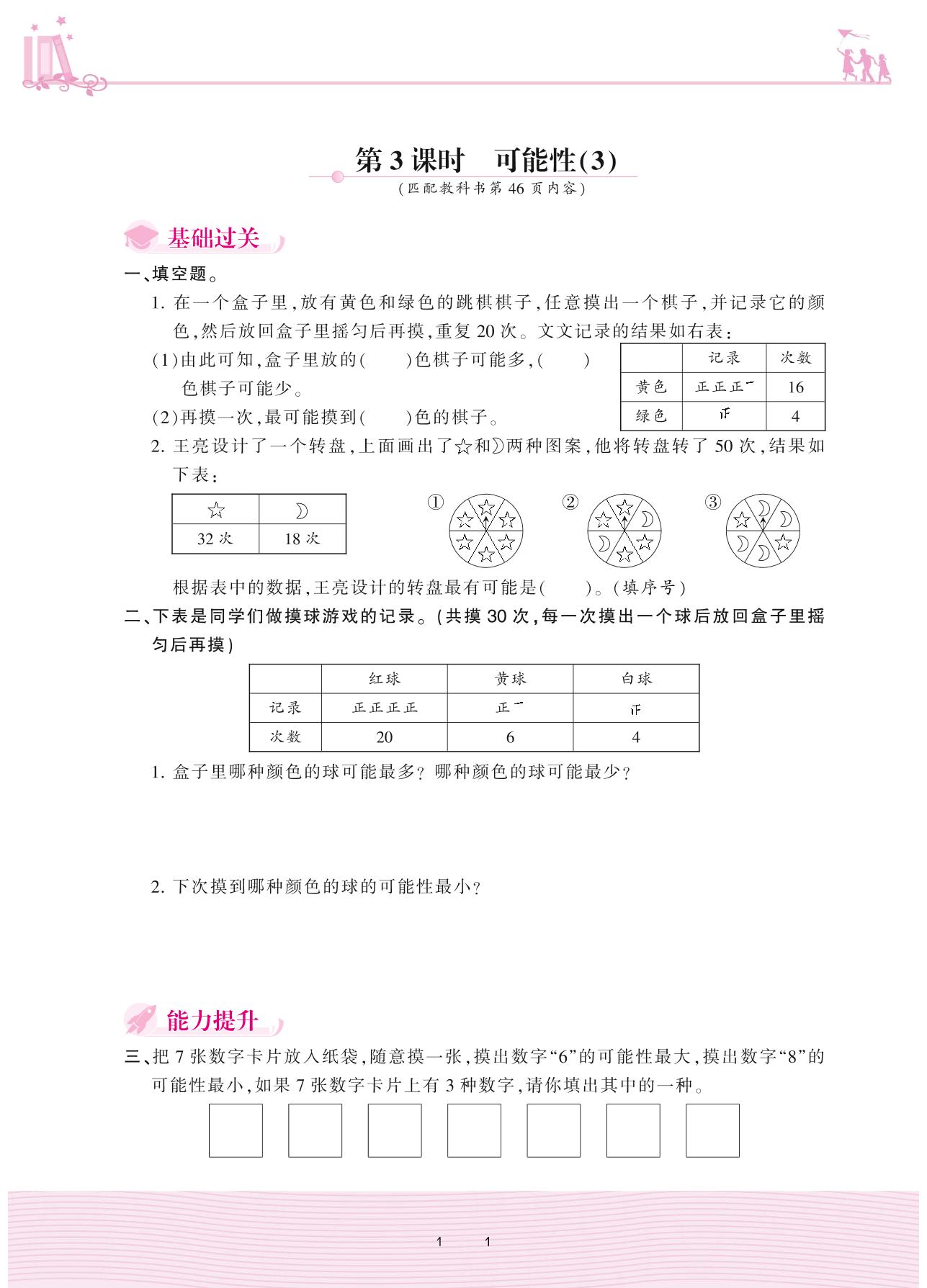 2020上册五年级数学人教版 4 可能性——第3课时 可能性(3)