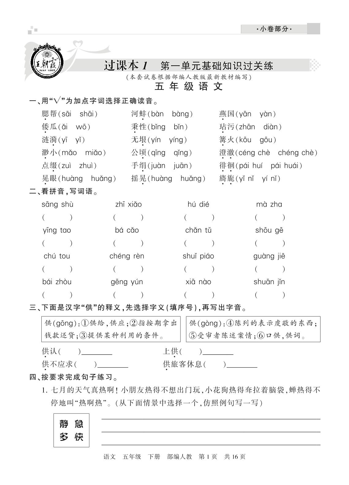 王朝霞期末过课本——基础知识过关练五年级下册语文(人教版)_R210801192008【0】