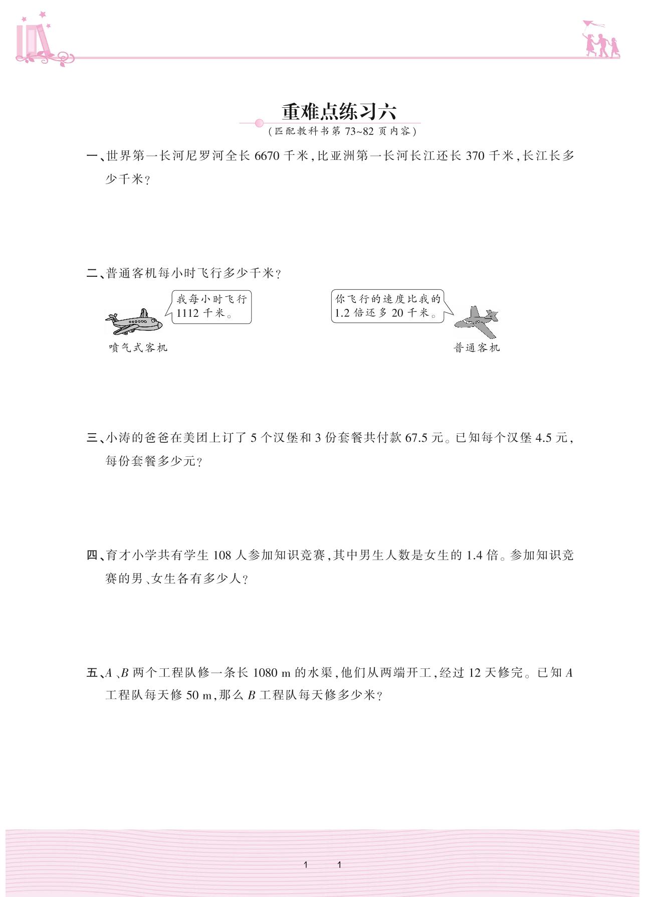 2020上册五年级数学人教版 5 简易方程——重难点练习六