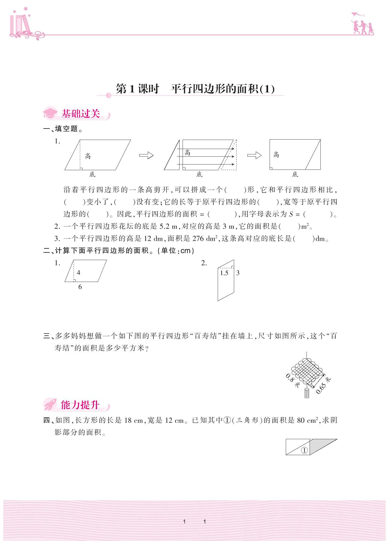 2020上册五年级数学人教版 6 多边形的面积——第1课时 平行四边形的面积(1)