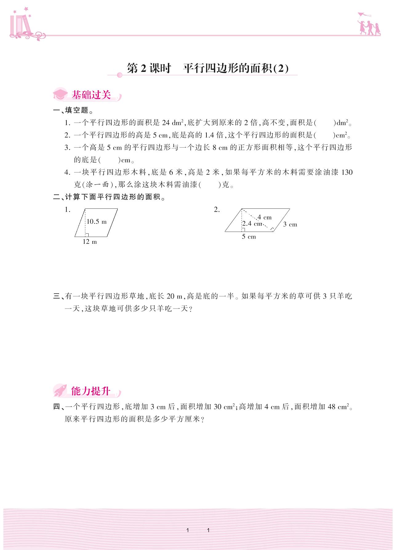2020上册五年级数学人教版 6 多边形的面积——第2课时 平行四边形的面积(2)