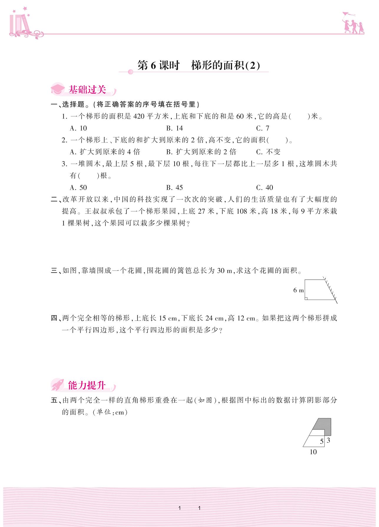 2020上册五年级数学人教版 6 多边形的面积——第6课时 梯形的面积(2)