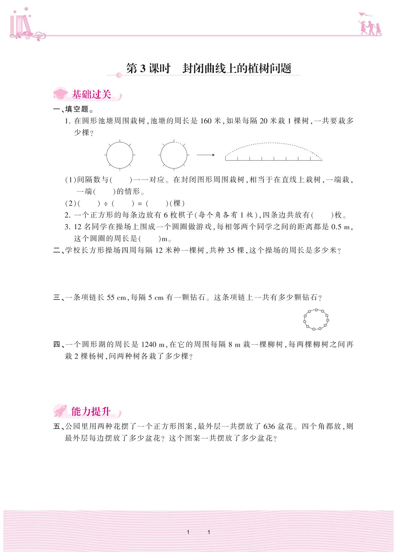 2020上册五年级数学人教版 7 数学广角——植树问题——第3课时 封闭曲线上的植树问题