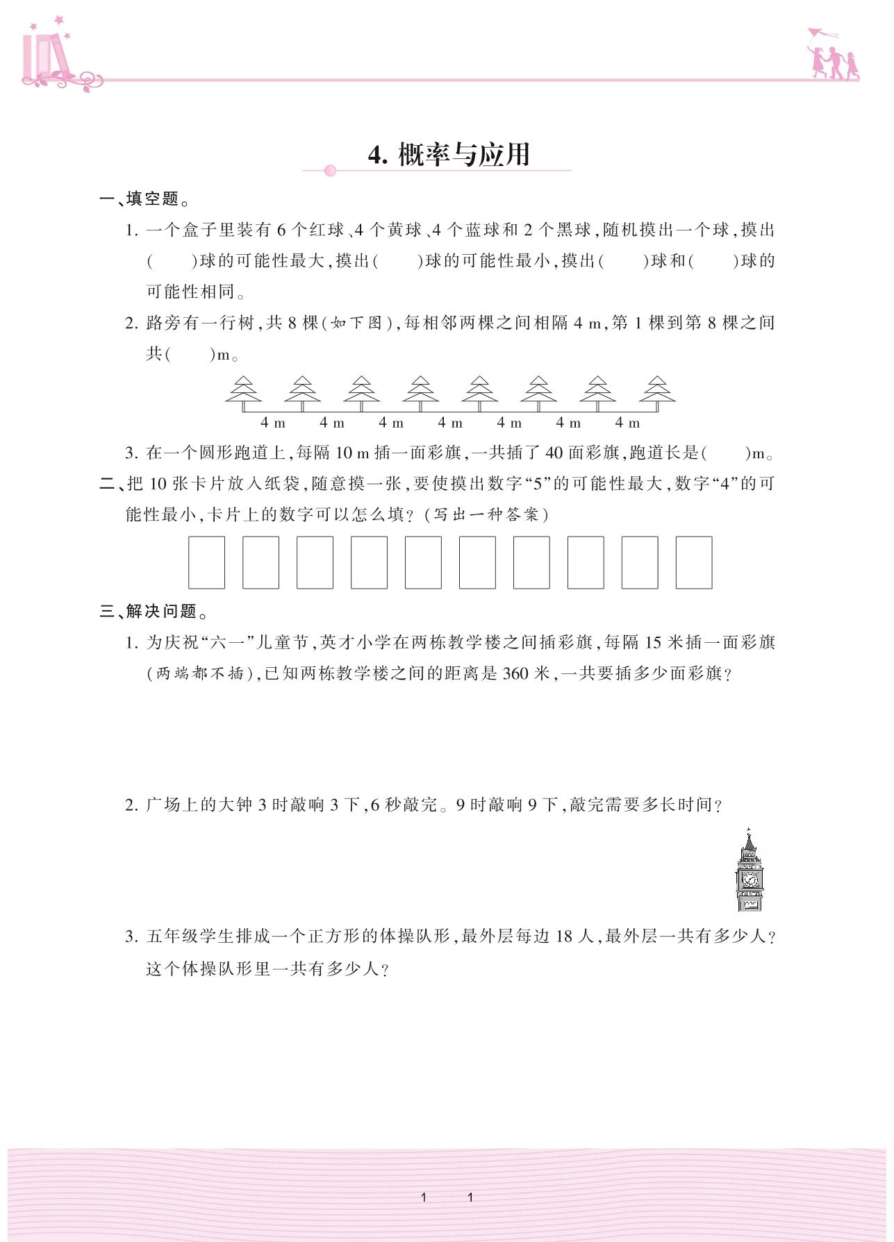 2020上册五年级数学人教版 8 总复习——4. 概率与应用
