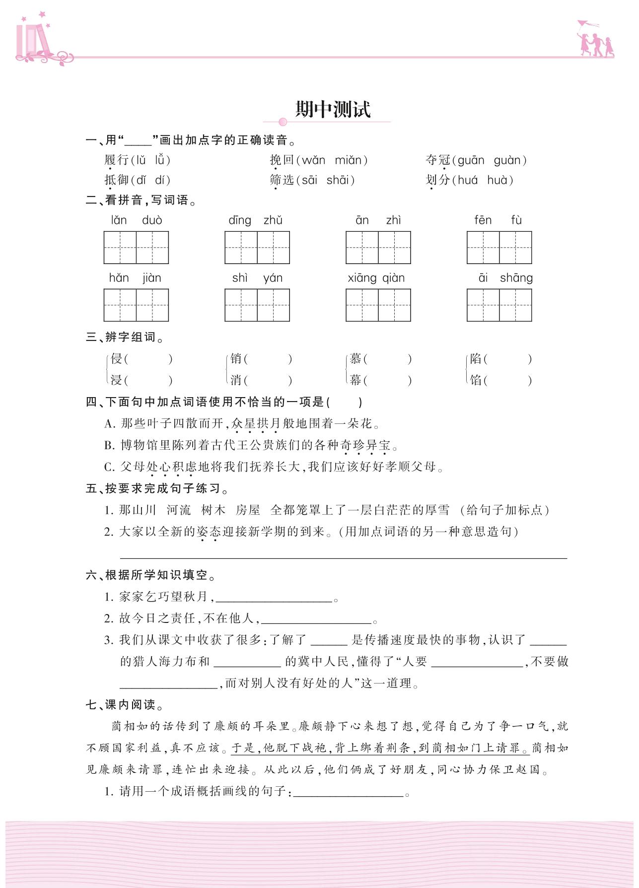 五年级语文人教版上册期中卷