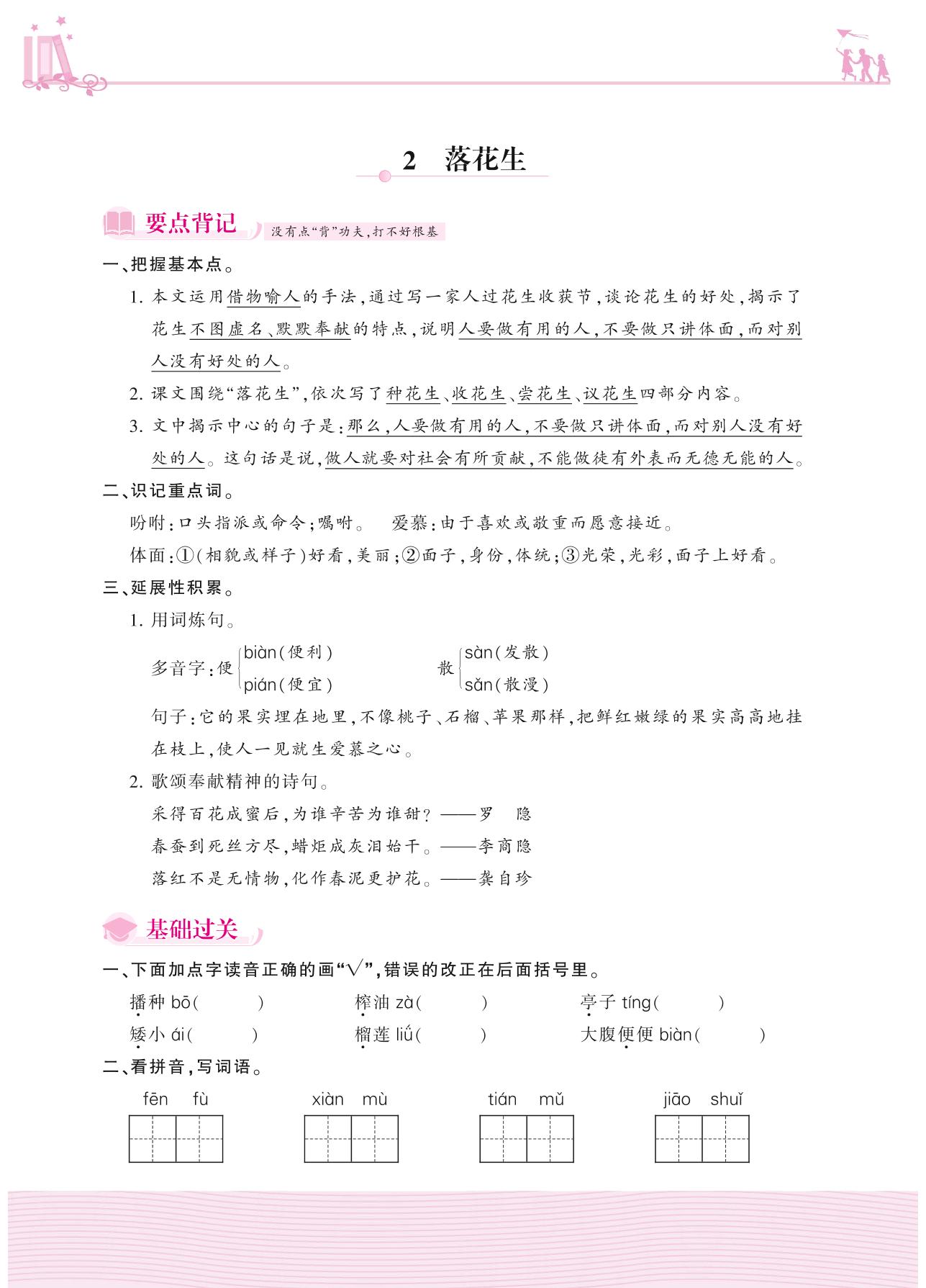 2020上册五年级语文人教版 第一单元——2 落花生