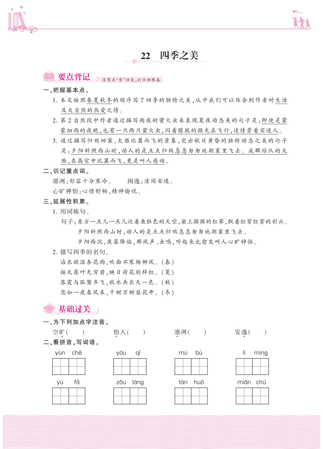 2020上册五年级语文人教版 第七单元——22 四季之美
