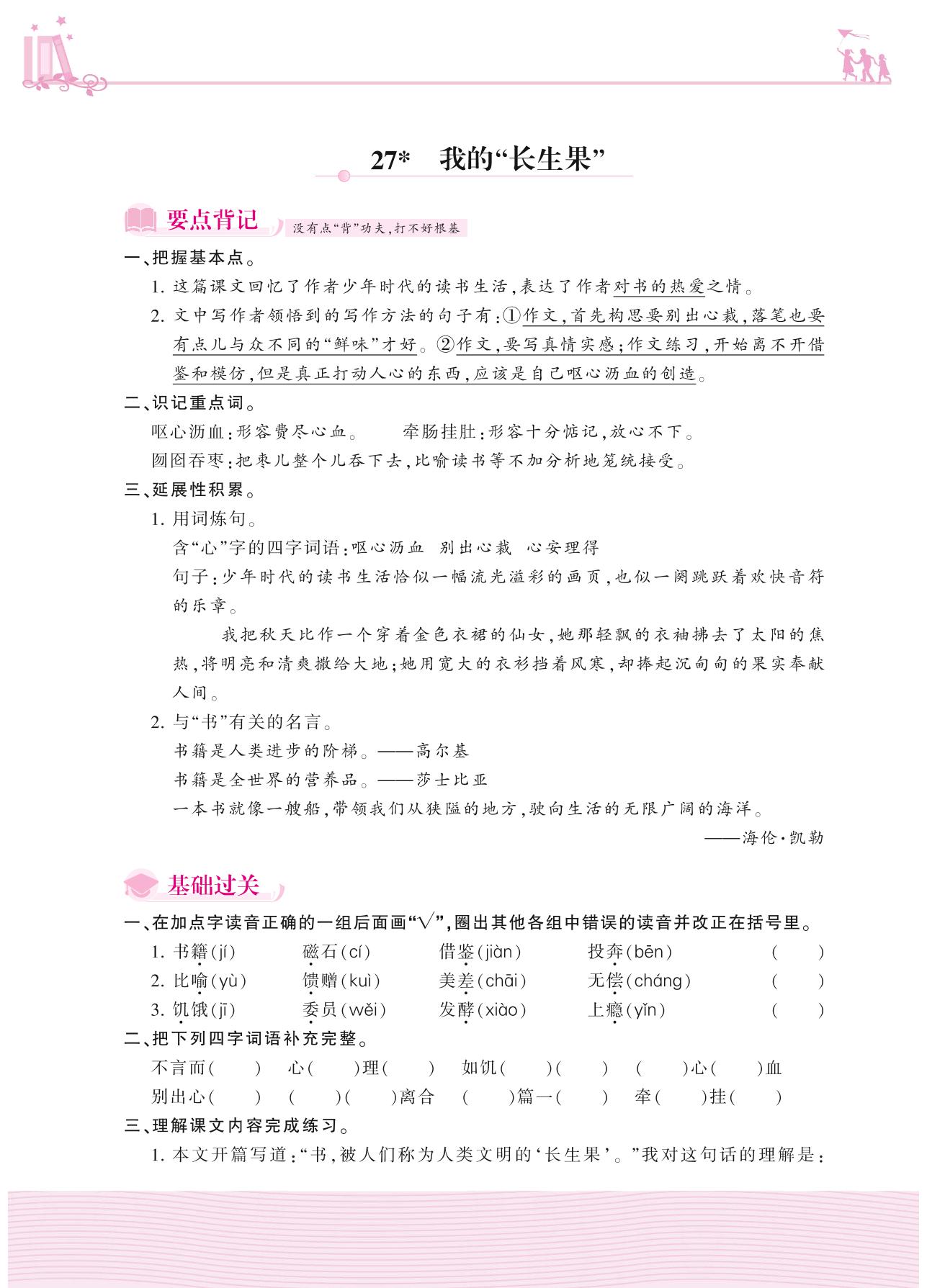 2020上册五年级语文人教版 第八单元——27 我的“长生果”