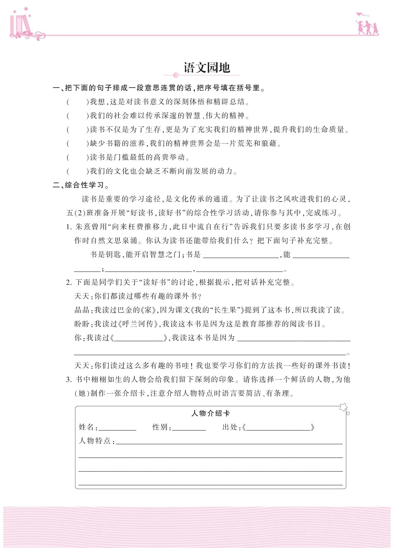 2020上册五年级语文人教版 第八单元——语文园地