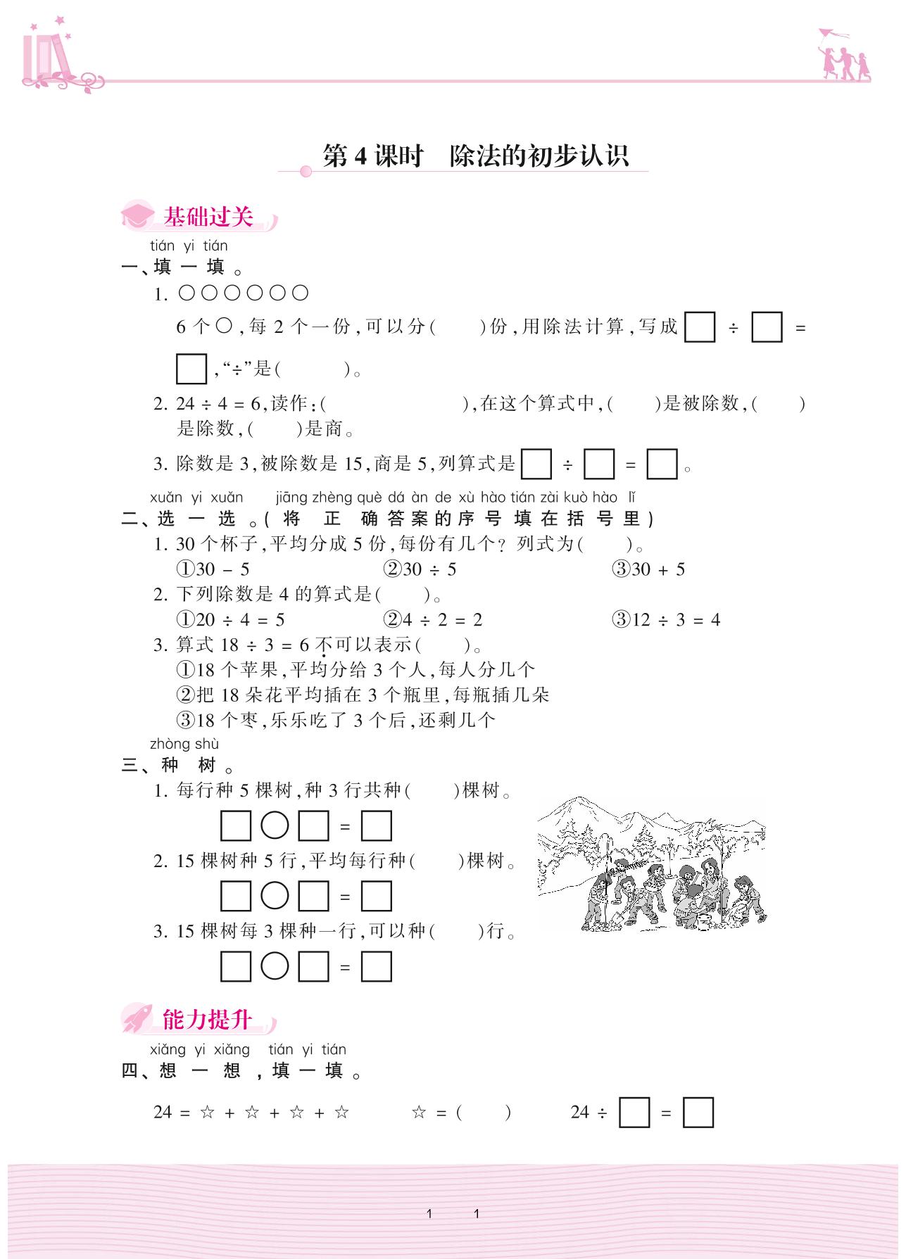 2020上册二年级数学苏教版 四 表内除法(一)——第4课时 除法的初步认识
