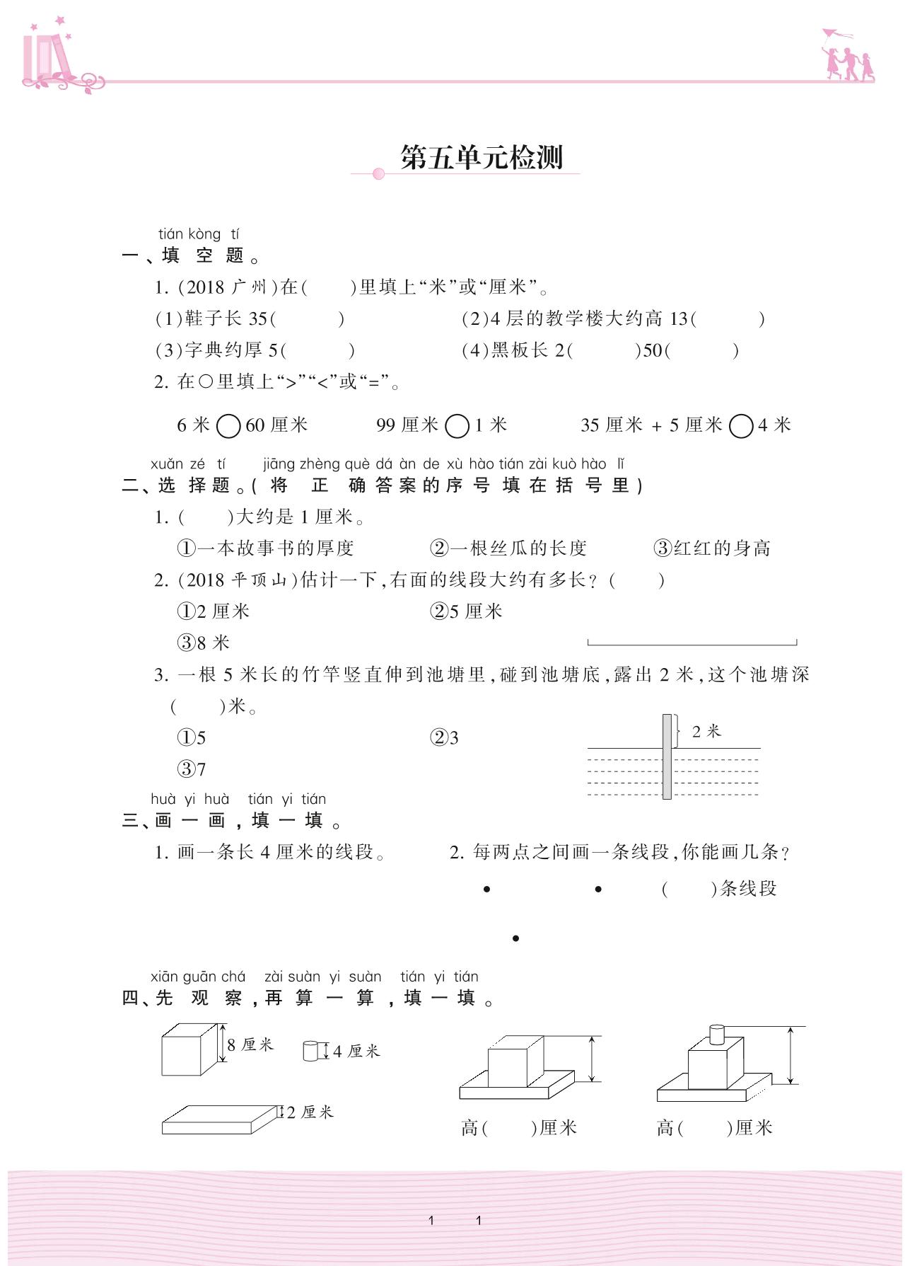 2020上册二年级数学苏教版 第五单元检测