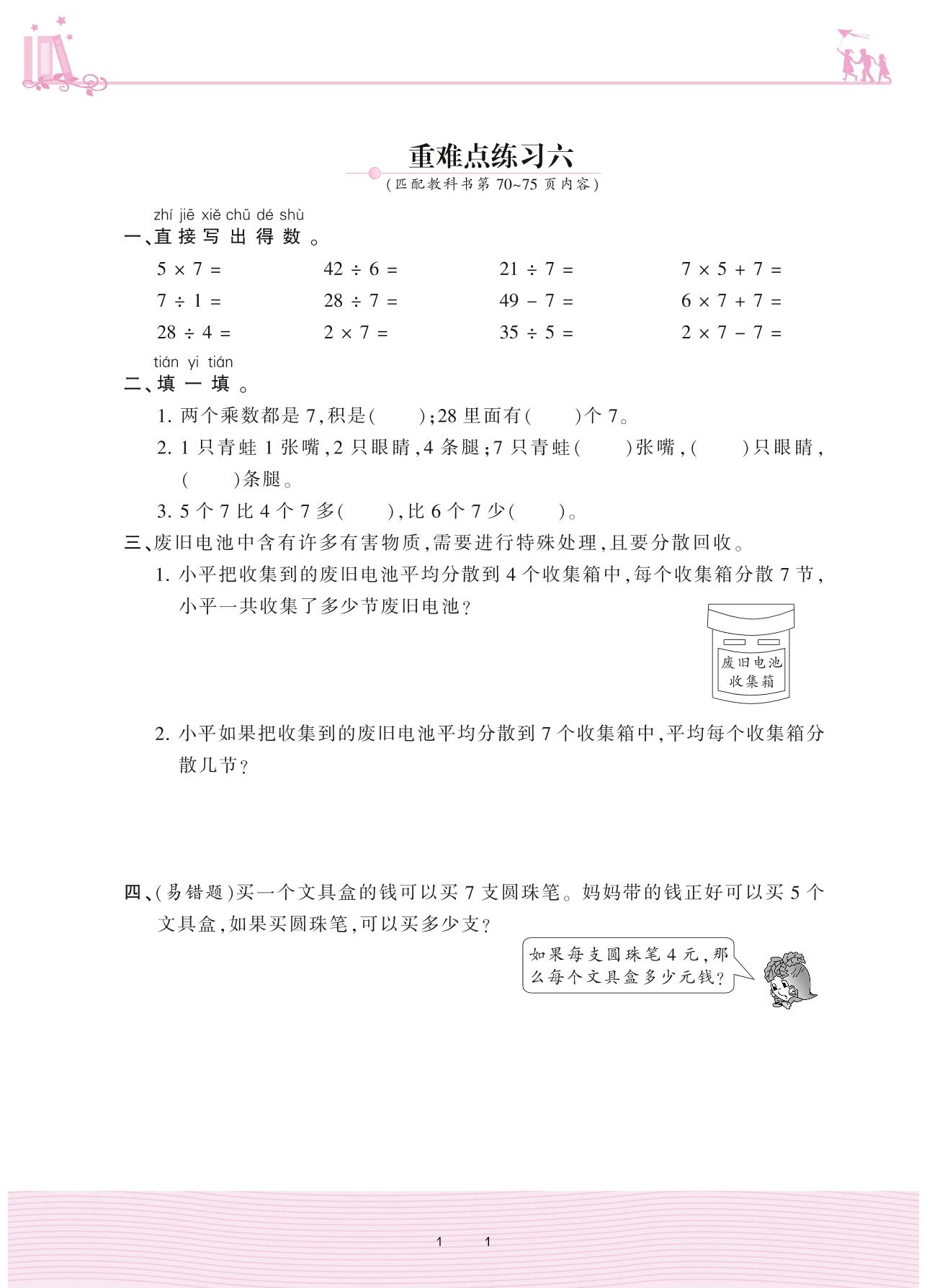 2020上册二年级数学苏教版 六 表内乘法和表内除法(二)——重难点练习六