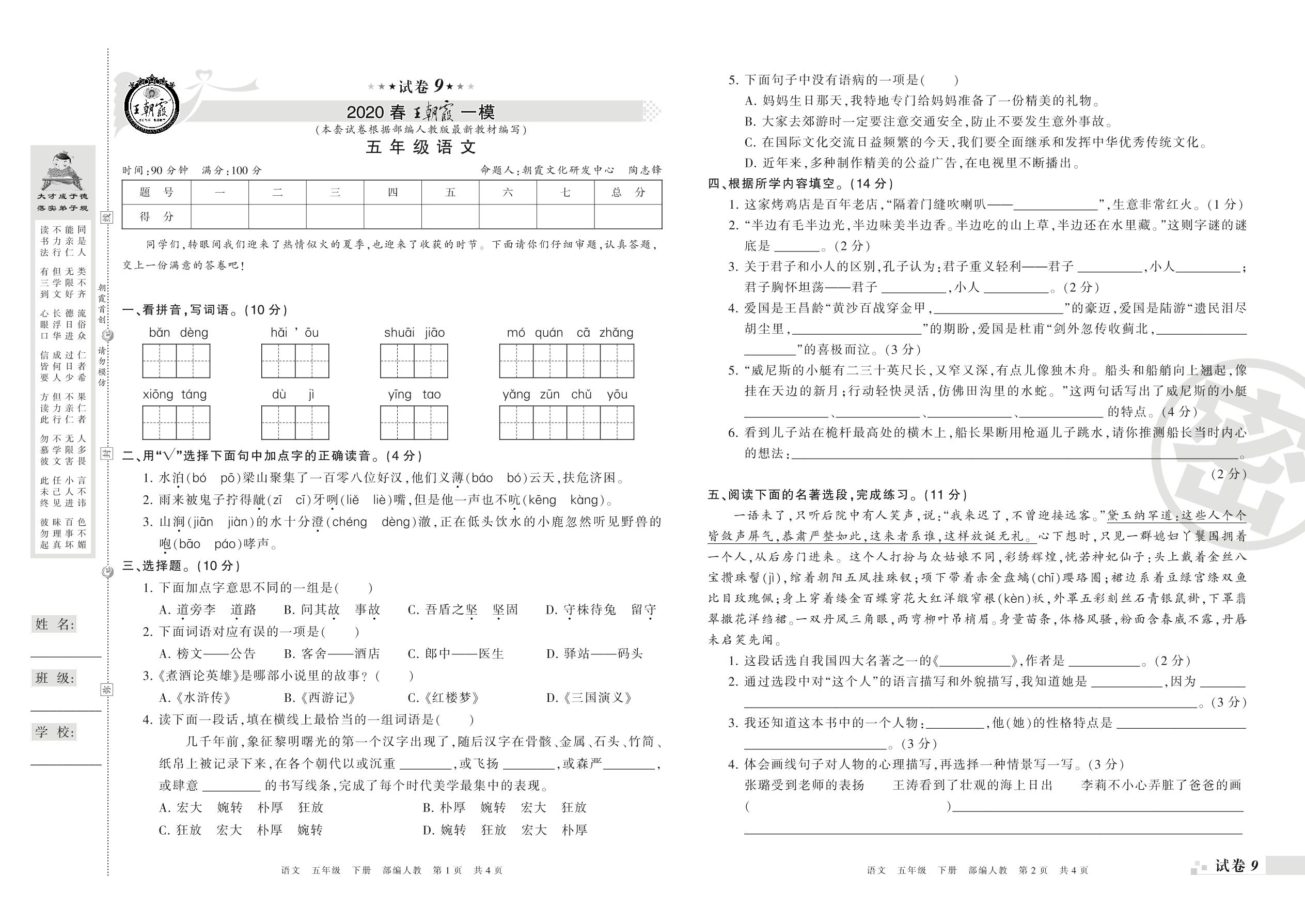 王朝霞期末模拟卷五年级下册语文(人教版)_R210801192150【9】