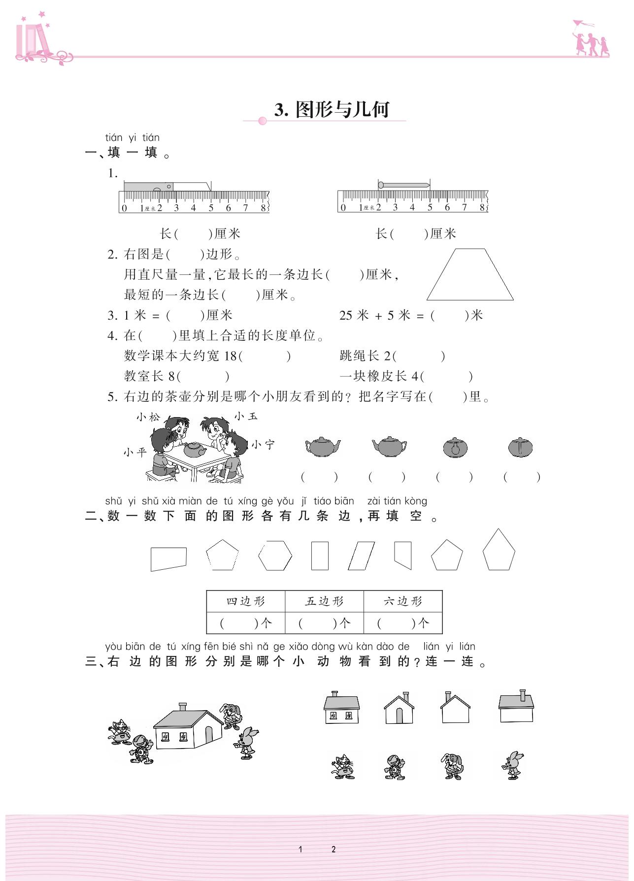 2020上册二年级数学苏教版 八 期末复习——3. 图形与几何