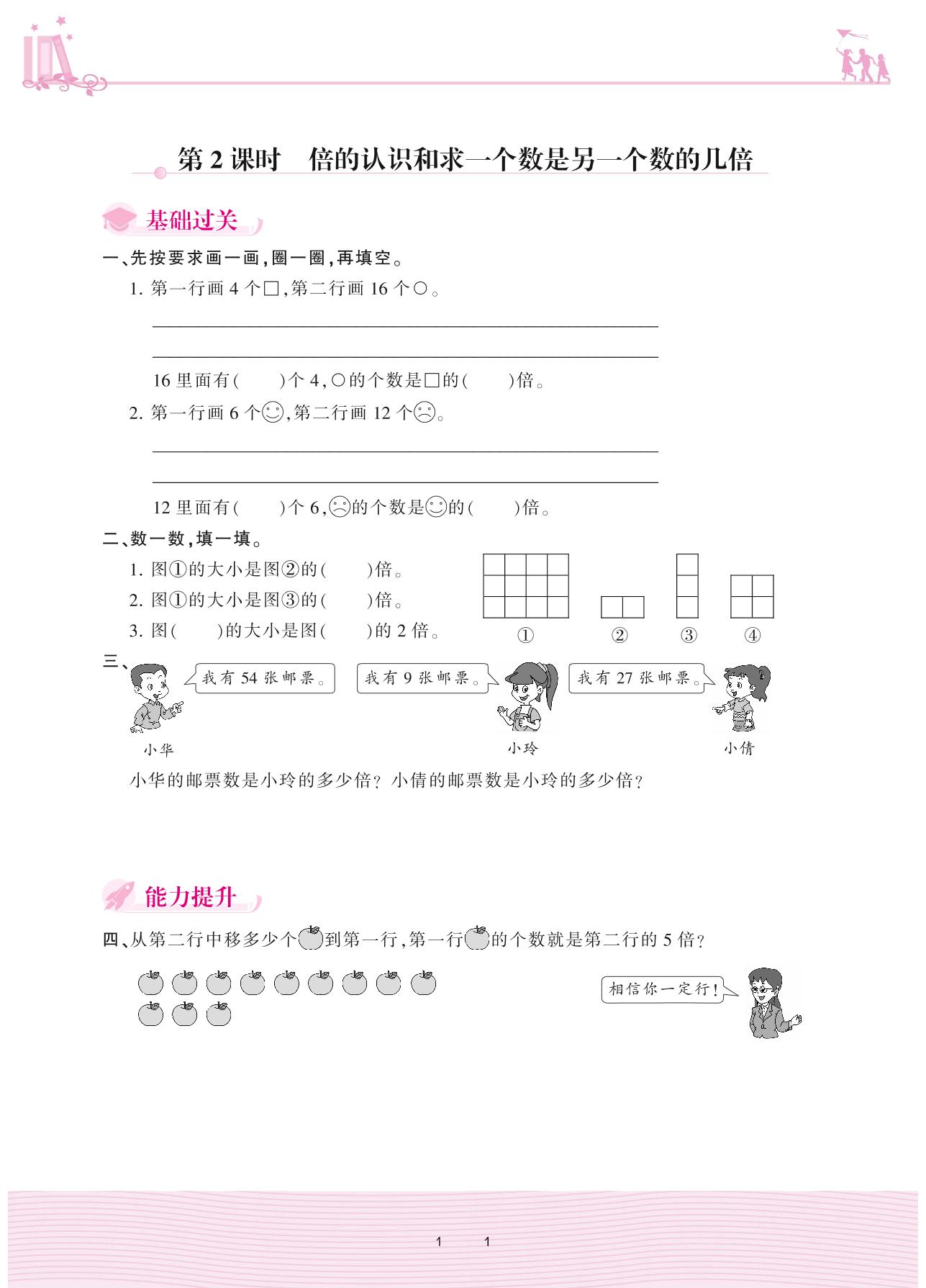 2020上册三年级数学苏教版 一 两、三位数乘一位数——第2课时 倍的认识和求一个数是另一个数的几倍