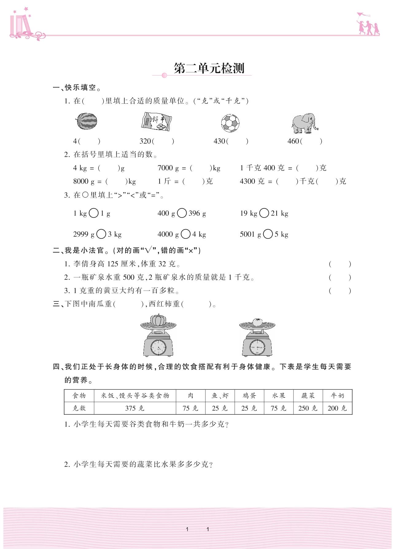 三年级数学苏教版上册单元卷