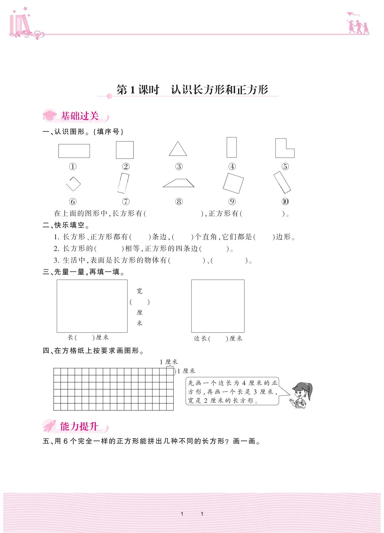 2020上册三年级数学苏教版 三 长方形和正方形——第1课时 认识长方形和正方形