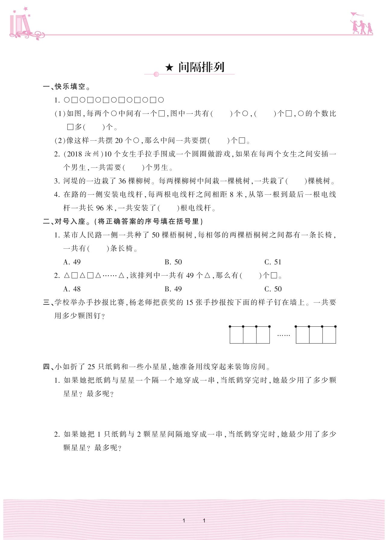2020上册三年级数学苏教版 五 解决问题的策略——间隔排列