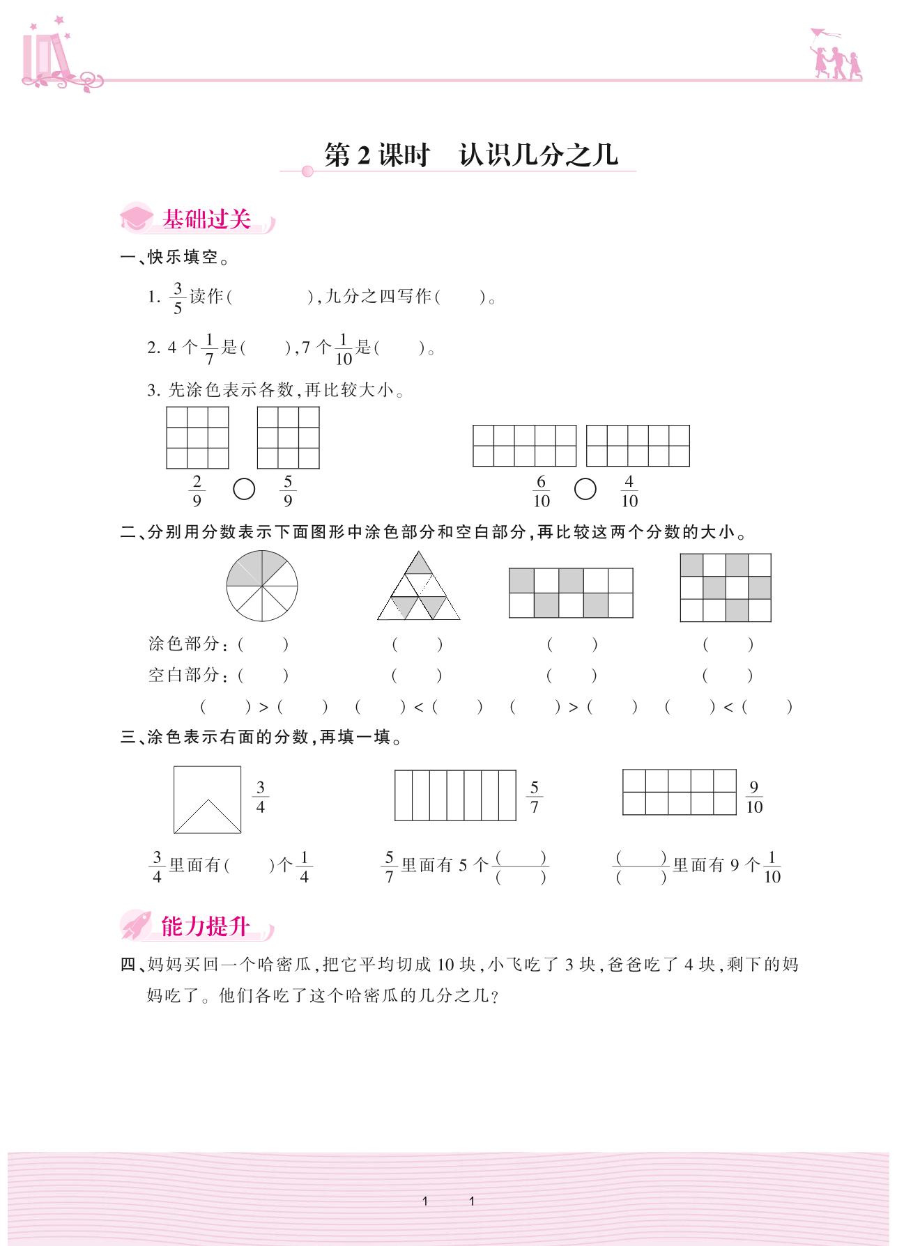 2020上册三年级数学苏教版 七 分数的初步认识(一)——第2课时 认识几分之几