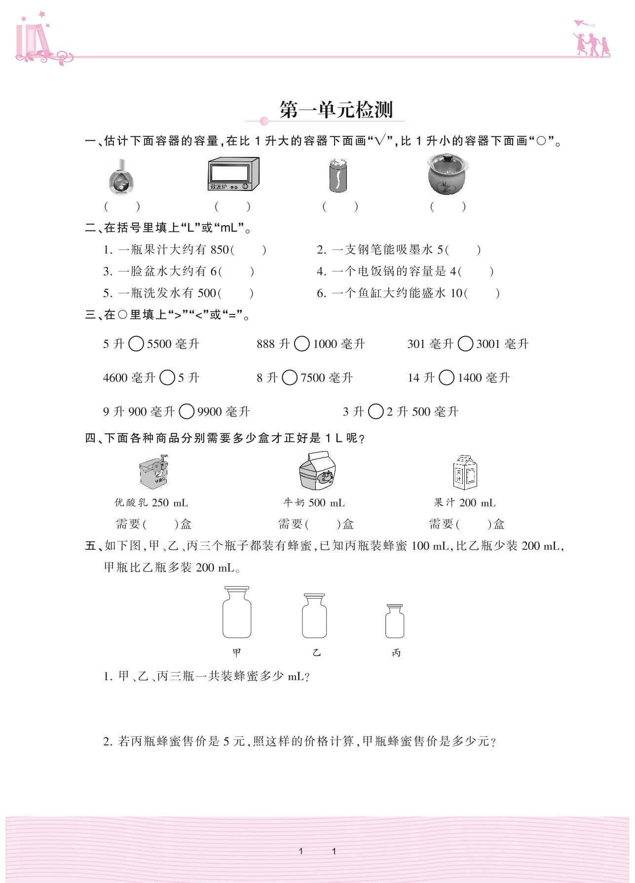 四年级数学苏教版上册单元卷