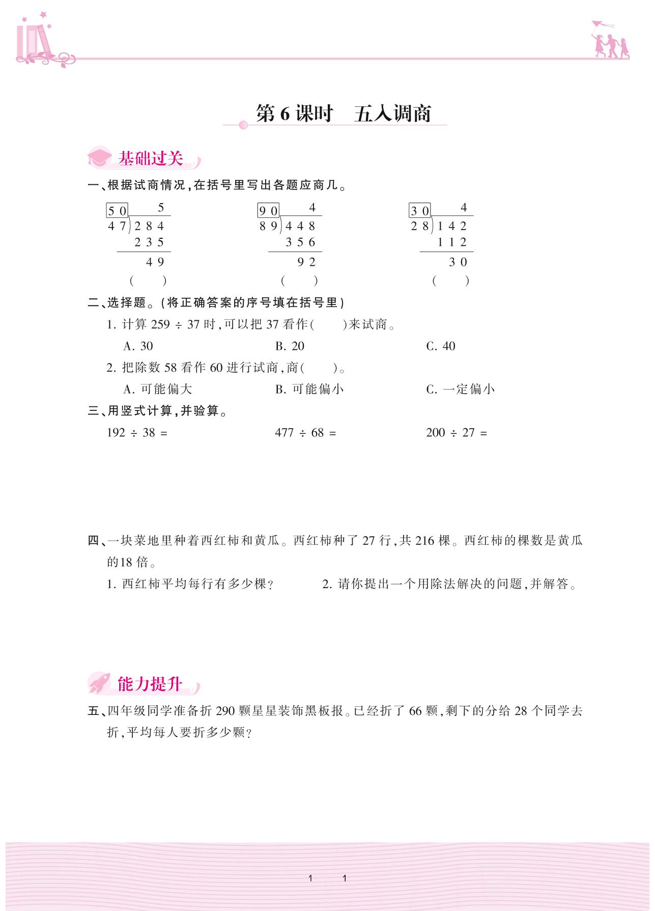 2020上册四年级数学苏教版 二 两、三位数除以两位数——第6课时 五入调商
