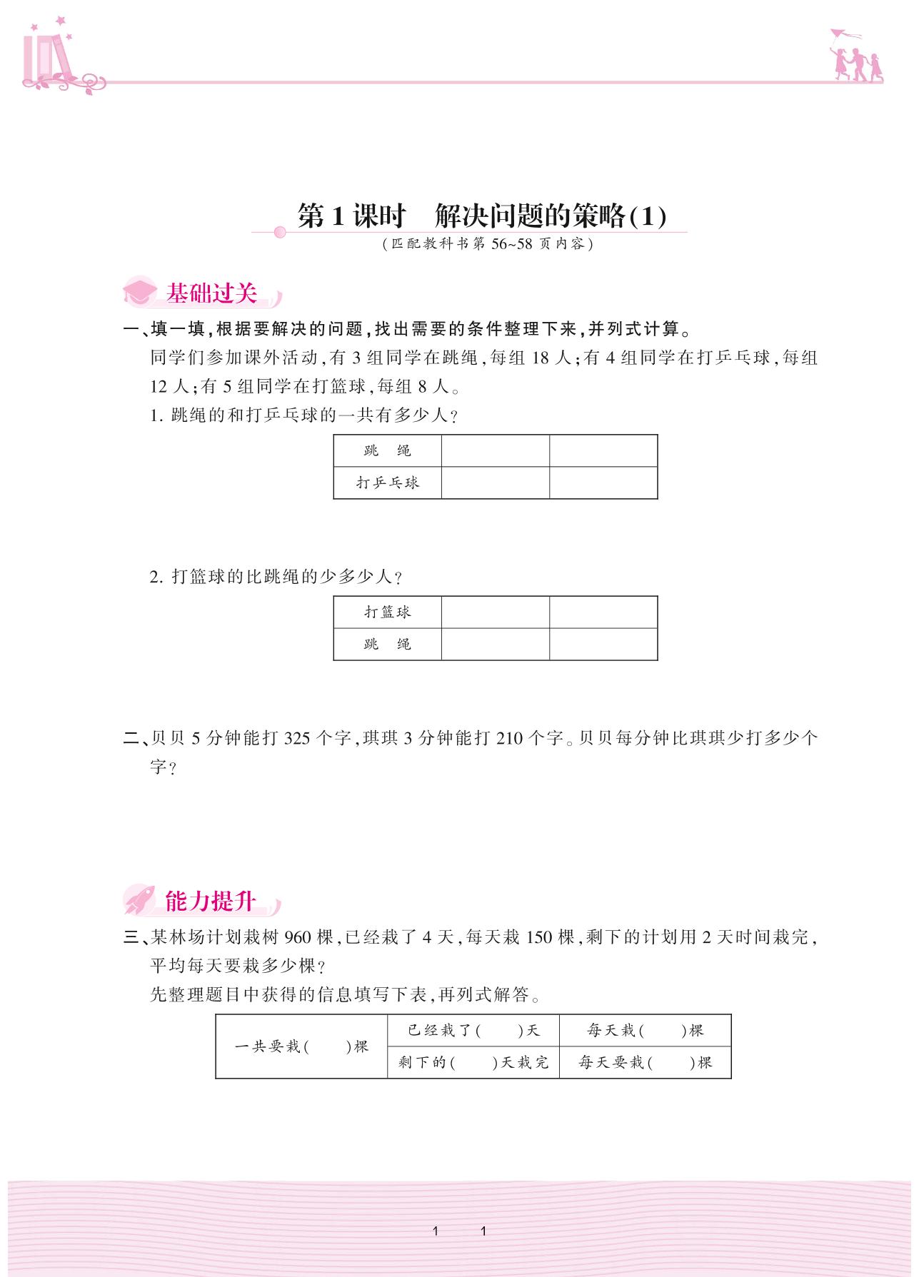 2020上册四年级数学苏教版 五 解决问题的策略——第1课时 解决问题的策略(1)