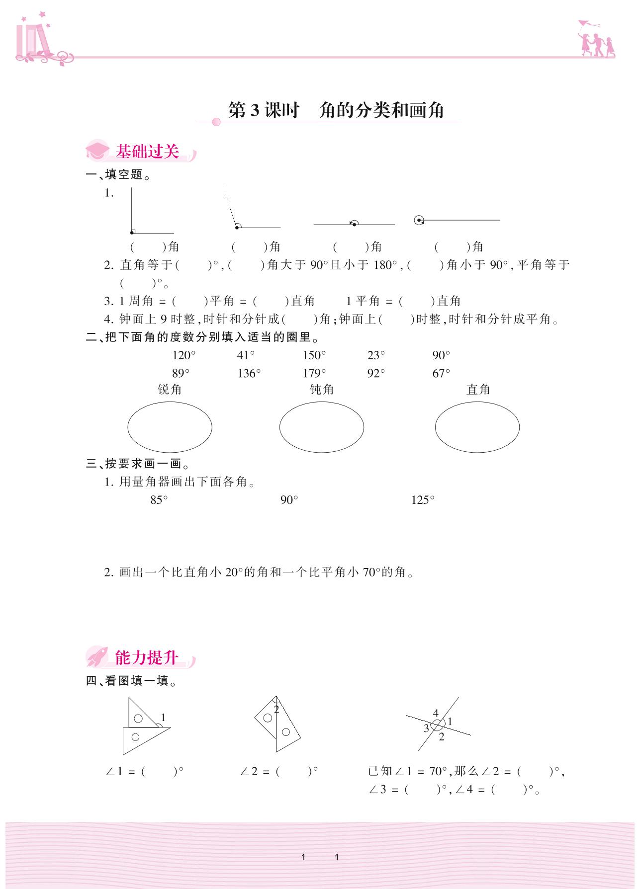 2020上册四年级数学苏教版 八 垂线与平行线——第3课时 角的分类和画角
