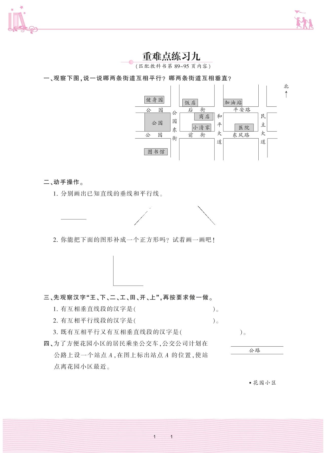 2020上册四年级数学苏教版 八 垂线与平行线——重难点练习九