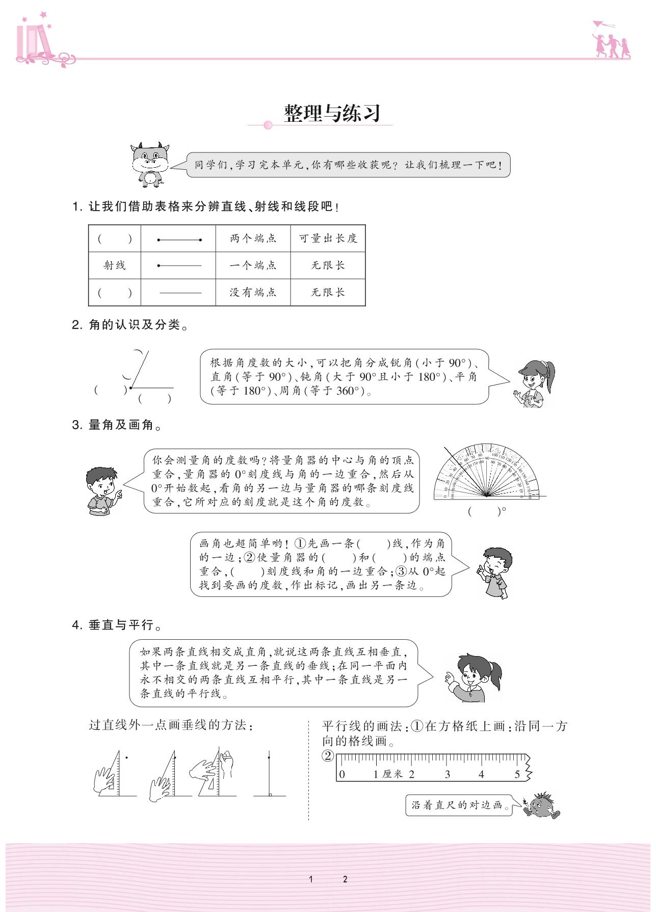 2020上册四年级数学苏教版 八 垂线与平行线——整理与练习